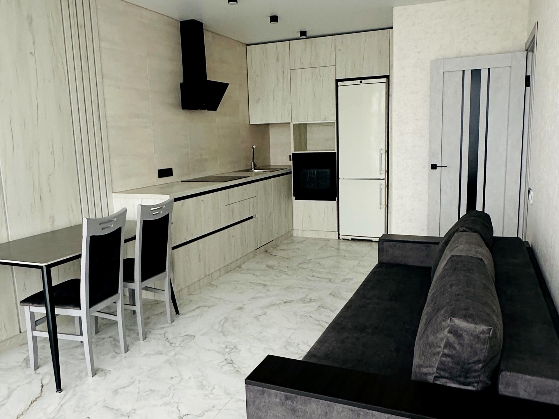 - КУХНЯ СТОЛОВА: зона для відпочинку, комфортний диван, вбудовані меблі та техніка( Холодильник, посудомийна машина, духова шафа, варильна поверхня, витяжка). Кухня повністю обладнана для комфортного проживання.