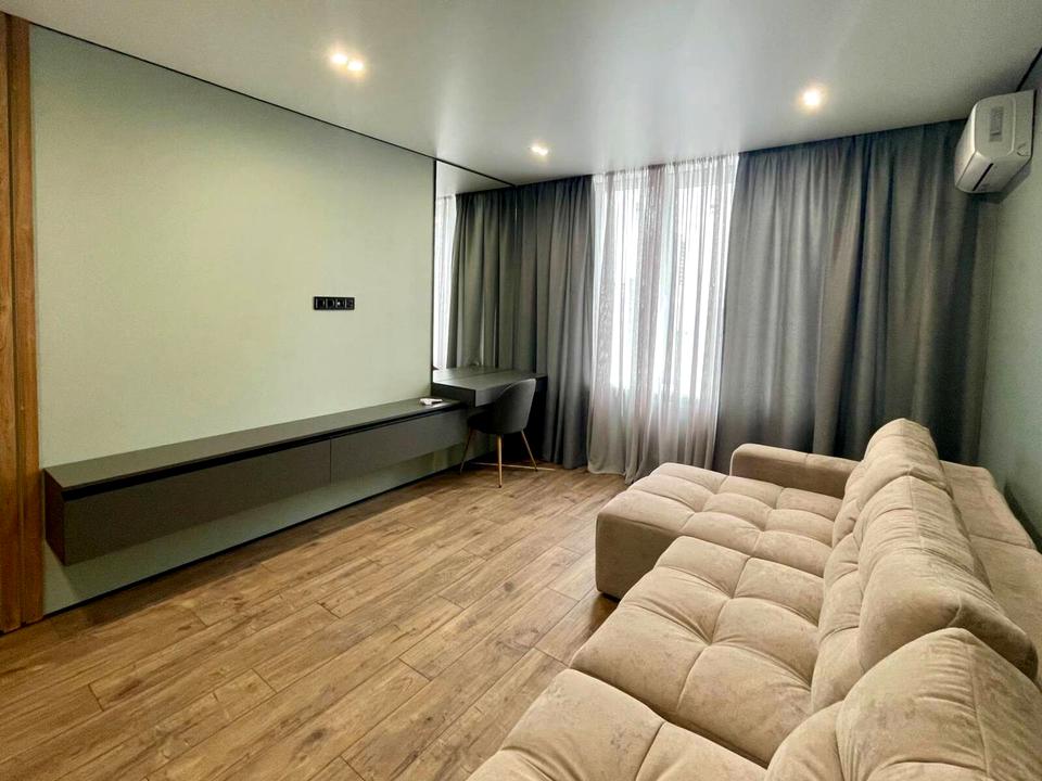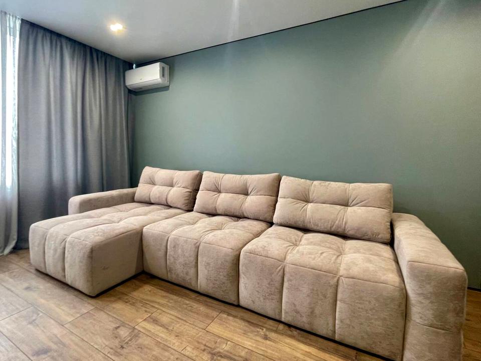 У квартирі виконано абсолютно новий дизайнерський ремонт у сучасному стилі, завдяки чому ви можете заїжджати одразу після покупки — тут ще ніхто не проживав, усе свіже та чисте.