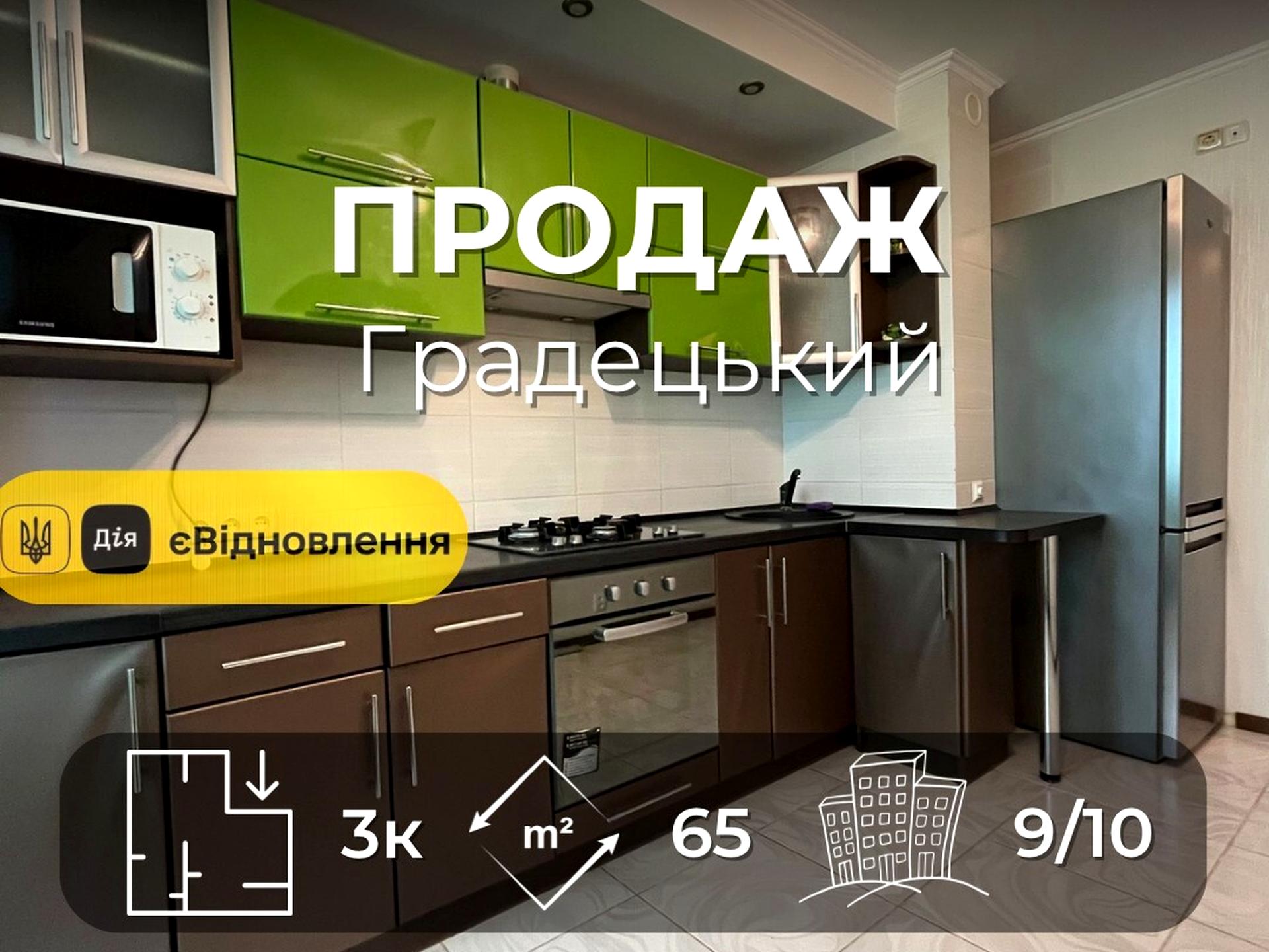 Продається 3-кімнатна квартира з якісним ремонтом 68м2, Градецький