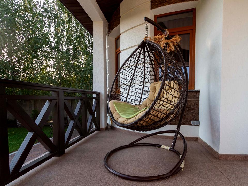 – Вихід на балкон з садовими меблями.
