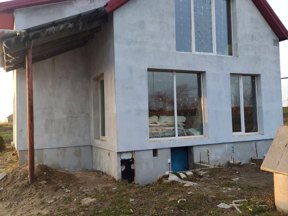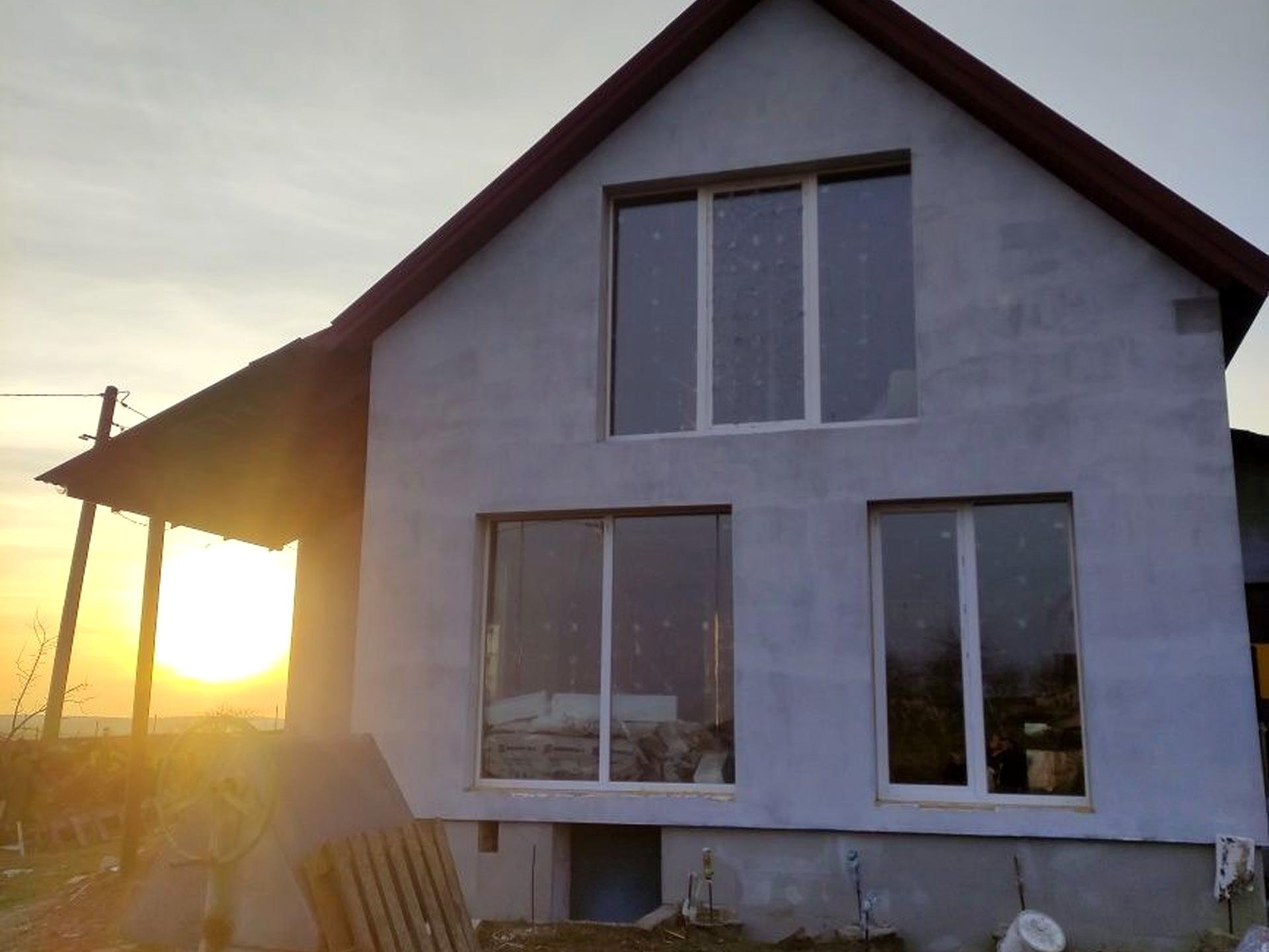 Загальна площа — 130 м², ділянка — 12 соток. У будинку 4 кімнати, панорамні вікна, утеплення пінопластом 15 см.