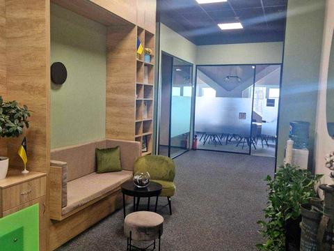 У офісі зроблено новий якісний дизайнерський ремонт із використанням сучасних матеріалів та продуманим зонуванням простору:
