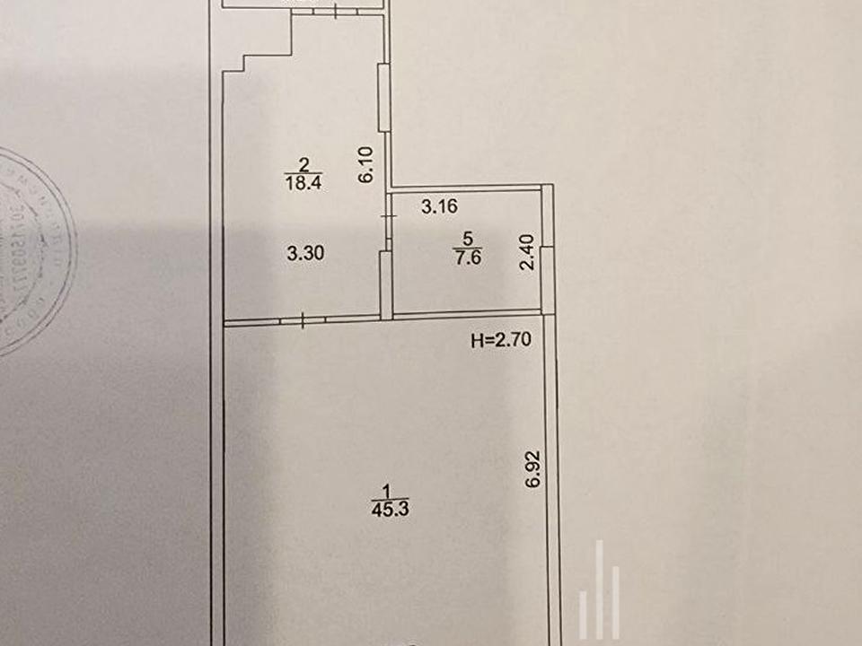 77,7 м, перший поверх, підведені всі комунікації, санвузол 6,4 кв.м., до 15 кВт електрика (можливе збільшення потужності, обговорюється з власником) монолітний-каркасний, стіни газоблок, вікна у двір в бік 3-го будинку.