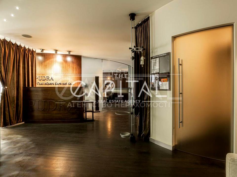 Приміщення розплановане кабінетною системою, є лаунж-зона, ресепшн, гардеробна.