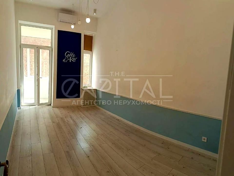 Об'єкт комерційної нерухомості, Приміщення в житловому будинку, Офісне приміщення. Об'єкт на 4 поверсі, У будівлі 4 поверхи. Під'їзд до будівлі - асфальт. Електрика підключена, потужність 5кВт кіловат. Немає телефону. Газу немає. Холодна вода - водопровід, гаряча вода - електричний бойлер. Опалення центральне. Є 2 санвузла. Сантехніка нова. Проведені металопластикові труби, нові. Немає огорожі. Підвал розташований окремо. Автопарковки немає. Централізована каналізація. Сигналізація. Будинок побудований в 1915 році. Кондиціонер. Поруч є зупинки, супермаркет, їдальня, кафе, ресторан, банкомат, відділення банку. Будівлю приватизовано. Документи на об'єкт нерухомості: договір купівлі-продажу. Сантехніка нова. Нові. Інтернет оптоволоконний.