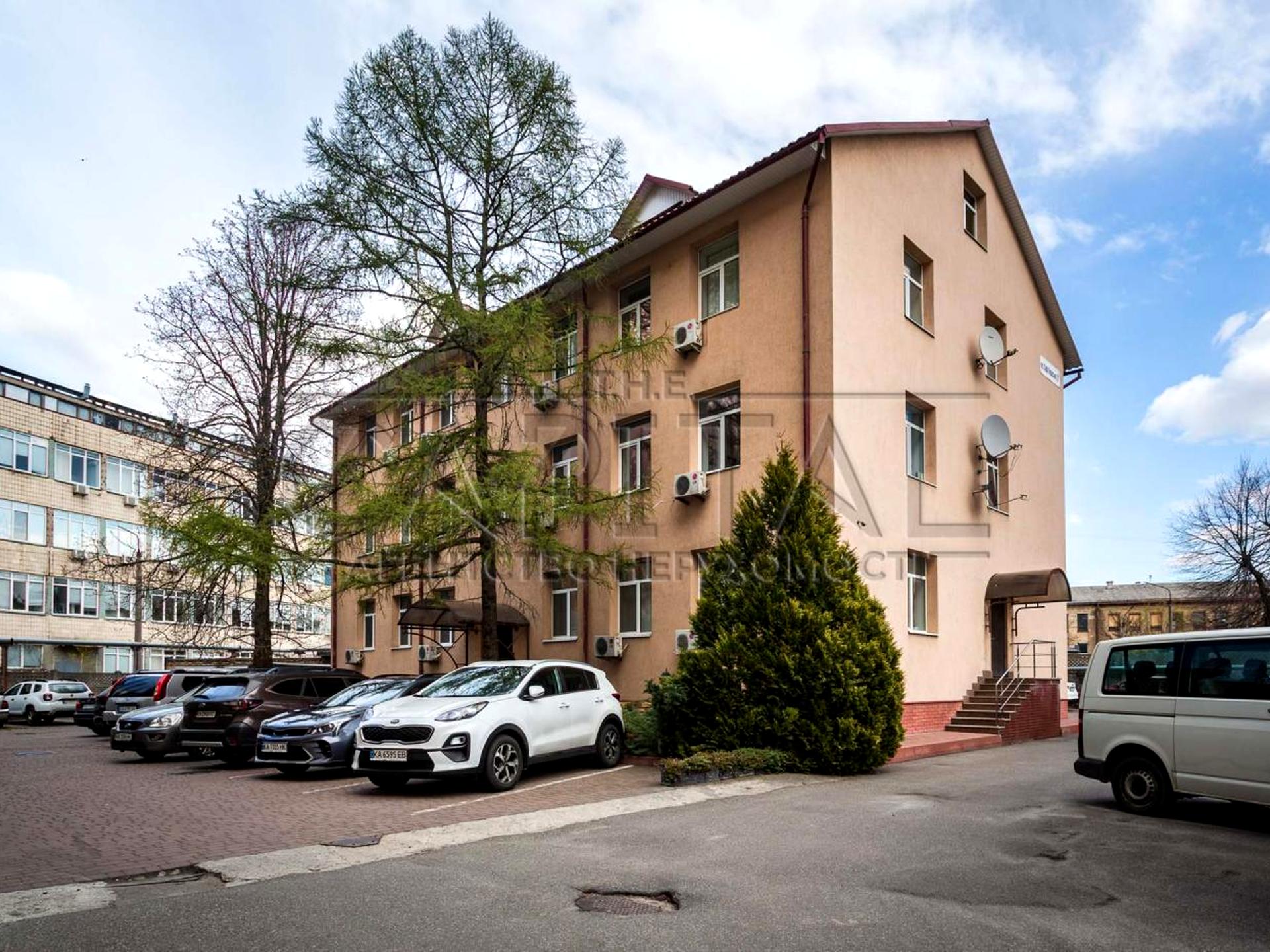 Пропонується в оренду окрема трьохповерхова будівля площею 851 м², розташована на території державної установи за адресою: м. Київ, вул. Софії Перовської, 10Б.