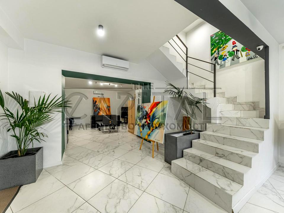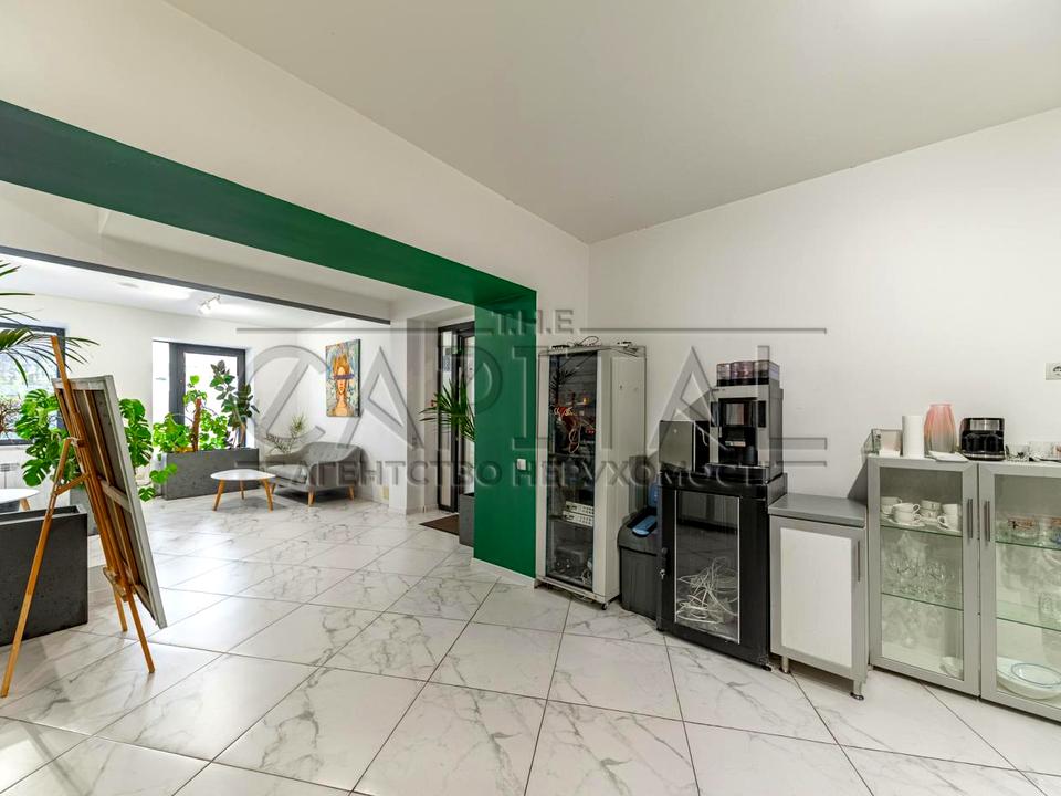 Окремий вхід, 5 поверхів, на першому поверсі вхідна група (броньовані двері), відеоспостереження, зона для відпочинку, великий холл. На другому поверсі кабінет керівника, кабінет-переговорна кімната. На третьому та четвертому поверсі кабінетна система, п'ятий поверх оупен спейс без ремонту (зробимо ремонт під орендаря за місяць).