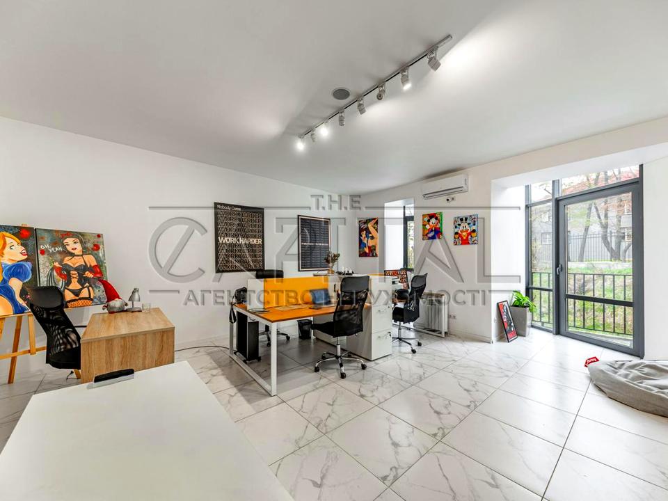 Окремий вхід, 5 поверхів, на першому поверсі вхідна група (броньовані двері), відеоспостереження, зона для відпочинку, великий холл. На другому поверсі кабінет керівника, кабінет-переговорна кімната. На третьому та четвертому поверсі кабінетна система, п'ятий поверх оупен спейс без ремонту (зробимо ремонт під орендаря за місяць).