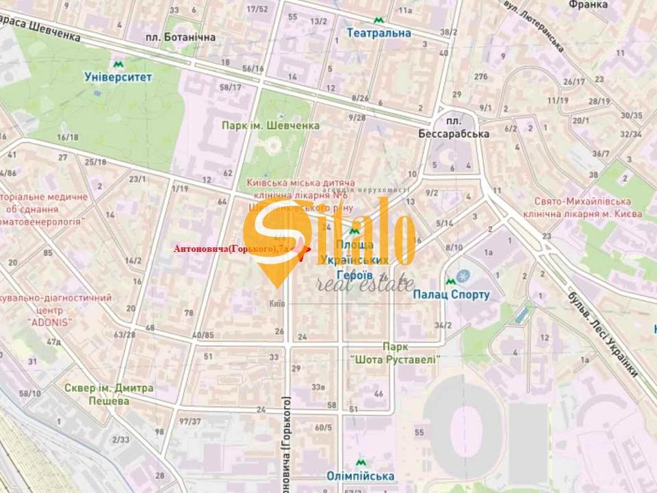 Фасад виходить на «бульварну» частину Антоновича, всього 2 хвилини пішки до метро «Площа Українських Героїв» та поруч із парком ім. Шевченка. Локація з ідеальною пішою доступністю та активним трафіком.