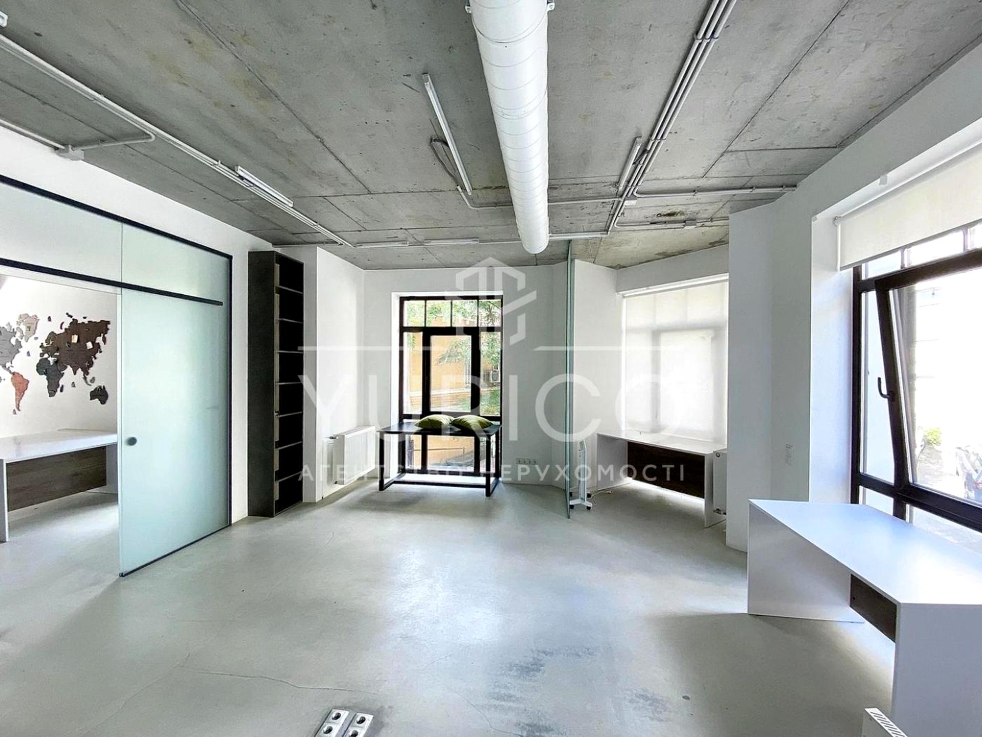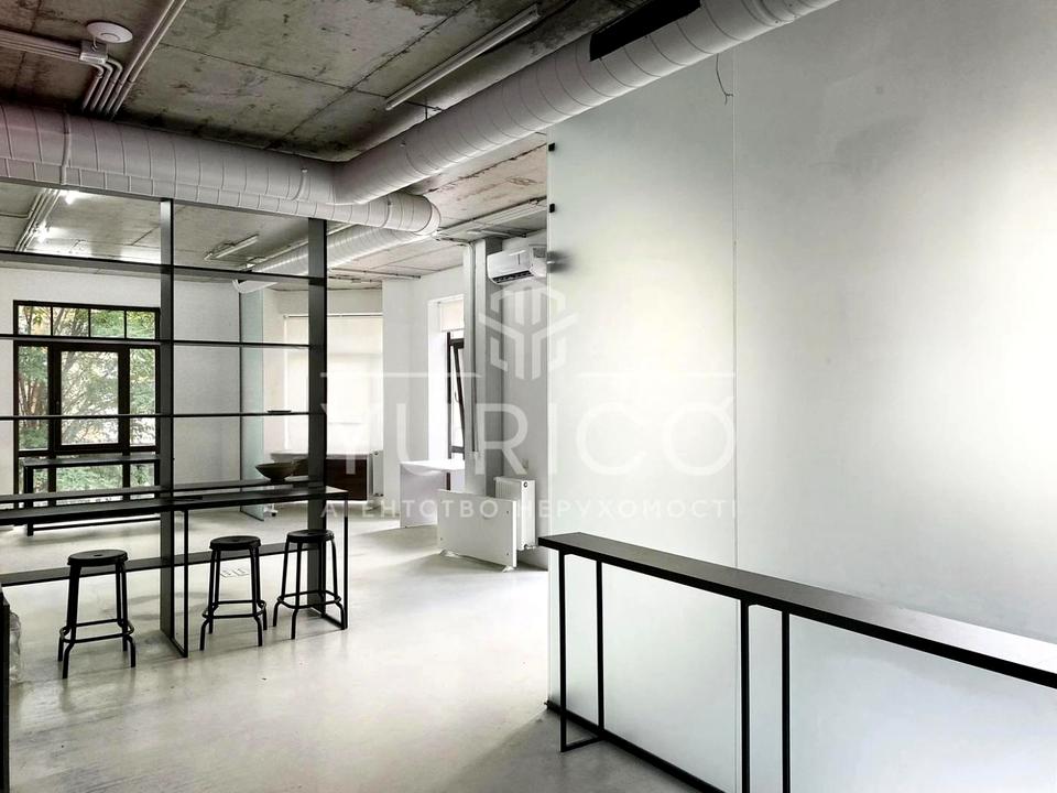 Видовий офіс на розі Андріївського узвозу та вулиці Воздвиженської, просторні робочі зони, два балкони, кімната переговорів, два санвузли, кухня. Зроблений ремонт в стилі LOFT, у дворі свій наземний паркінг. Історичний центр Подолу, розвинена інфраструктура.