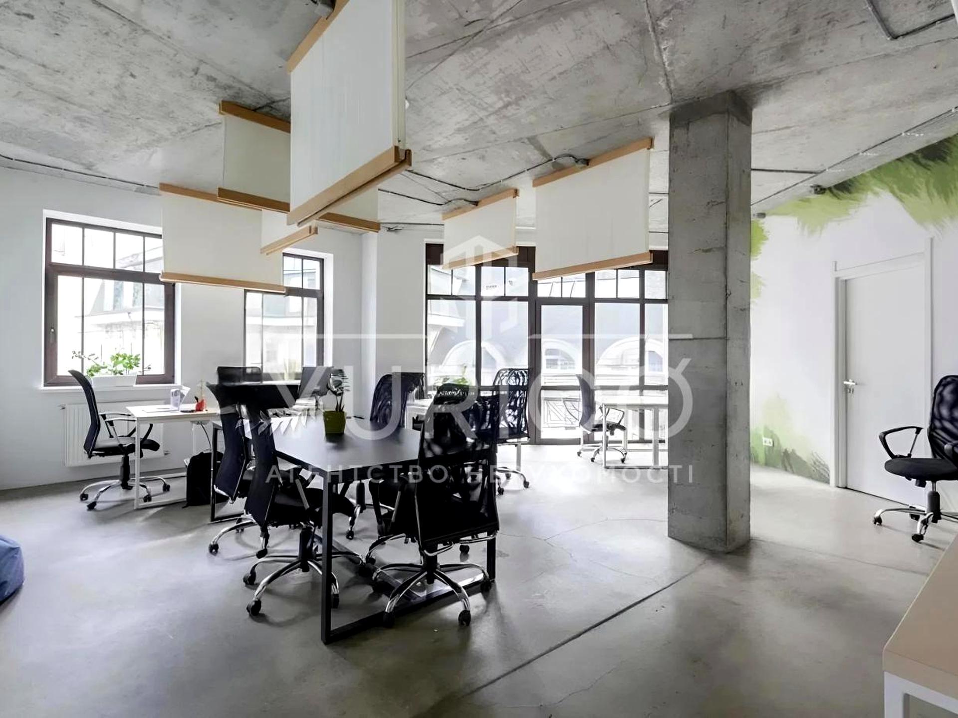 Видовий офіс на розі Андріївського узвозу та вулиці Воздвиженської, формат планування OPEN SPACE, дві відкриті тераси, кімната переговорів, два сан.вузли, кухня. Зроблений ремонт в стилі LOFT, наземний паркінг. Історичний центр Подолу, розвинена інфраструктура.