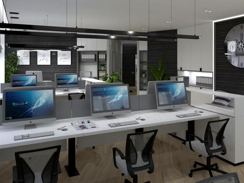 -Офіс, Салон або Шоурум, 120 кв.м, зручне планування: опен-спейс та два окремих кабінети, міні-кухня, два санвузли, балкон. Сучасний ремонт в білих тонах, кондиціонери, компʼютерна мережа, висота стель Н=3 метри, 5 швидкісних ліфтів KONE, презентабельне фойє з залою очікування.