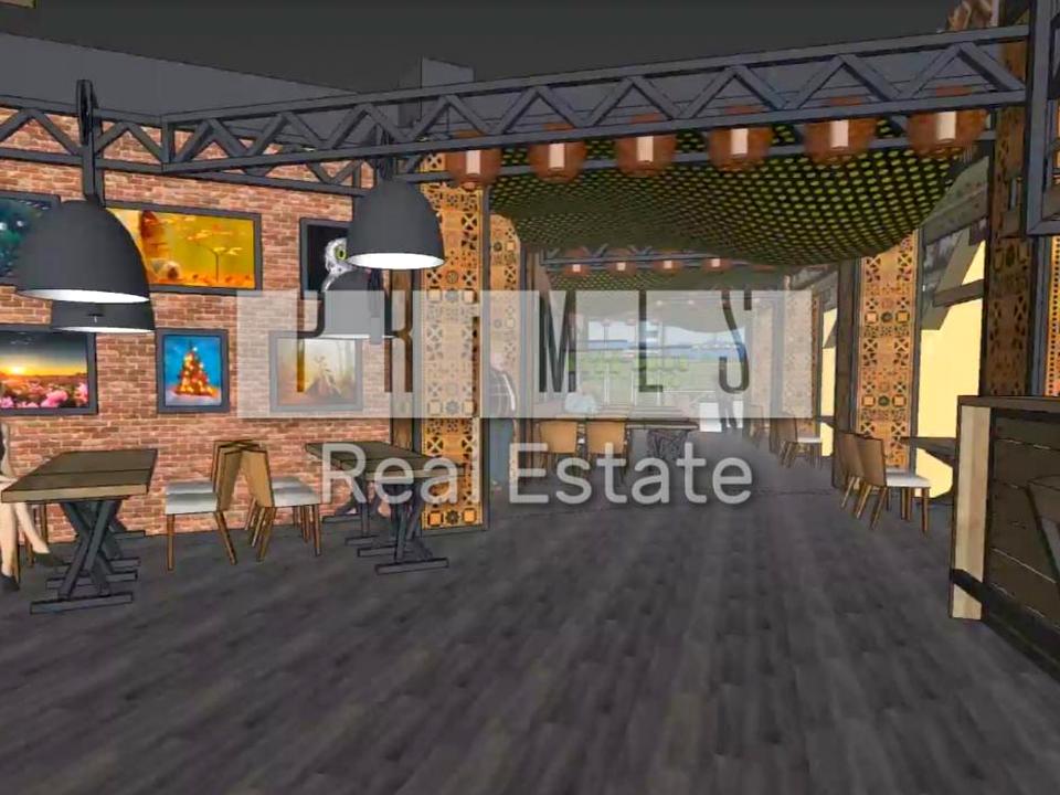 Вся площа 310 кв. в одному рівні на першому поверсі. Великий фасадний вхід, безрамна скляна вітрина та двері. Приміщення готувалося під бар, зроблено підлогу (нова плитка під темне дерево), декоровані на рівні стіни. Планування: На фасаді відкритий гостьовий простір під аркою. Головний зал. Окреме приміщення для сигарної кімнати та вінотеки. Кабінет керівництва. Місце для кухні та технології з окном та санітарними зонами. Санвузол для гостей, душ та санвузол для персоналу.
