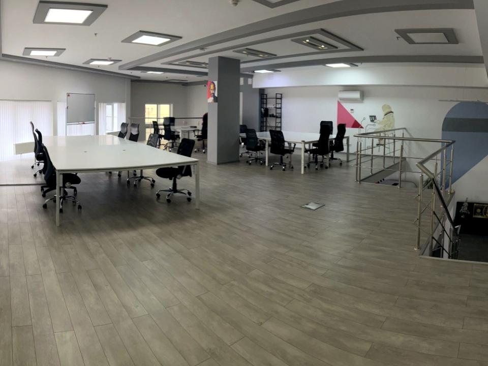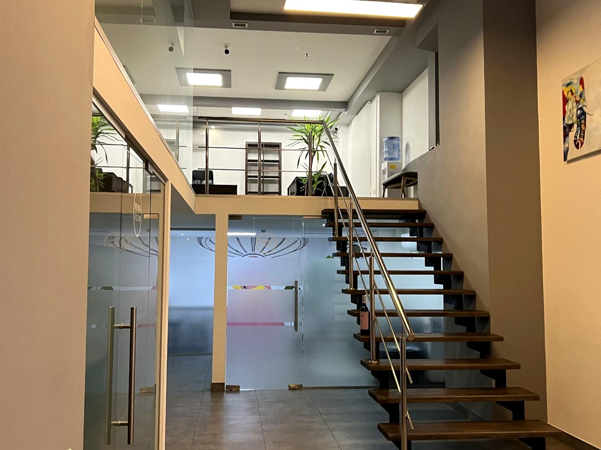 Приміщення повністю мебльоване столами до яких підключені розетки, стільцями, тумбами з шухлядами та кодиціонерами, 2 поверхи з open space розміщенням та окремим кабінетом для керівництва.