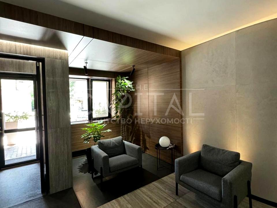 Дизайн інтер'єру в сучасному стилі з використанням найкращих світових брендів в оформленні та в декорі. Ремонт виконаний матеріалами преміум-класу. Двері, меблі, натуральне дерево, підлога - дерево горіх. В інтер'єрі кухні використано натуральний камінь. Квартира повністю доукомплектується меблями по запиту.