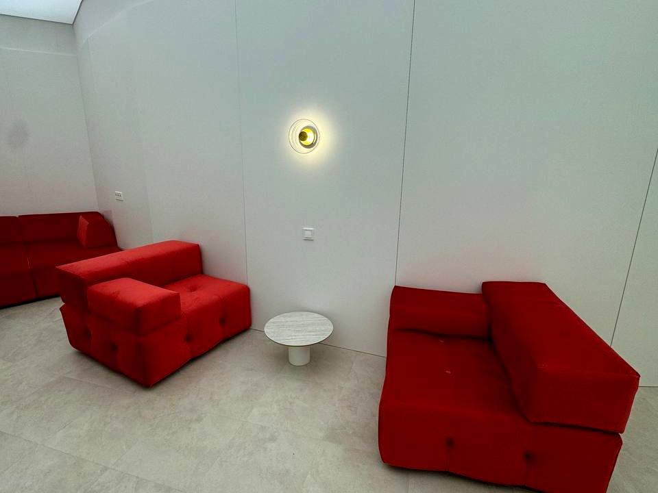 Просторий офіс із фасадним входом у сучасному житловому комплексі бізнес-класу.