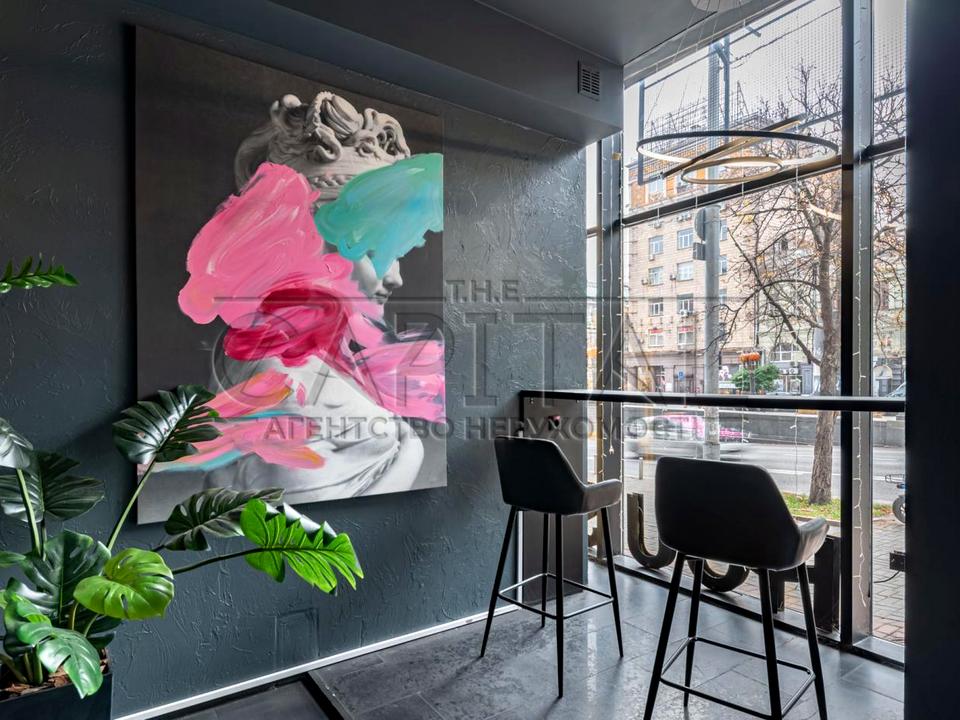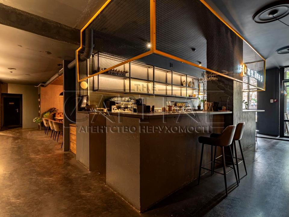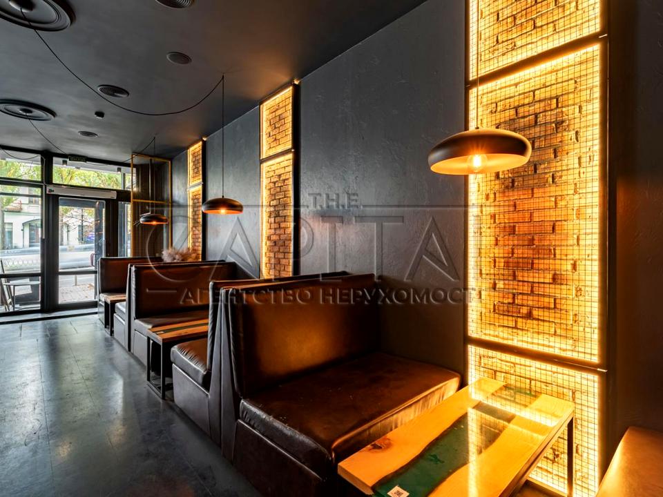 Оренда комерційного фасадного приміщення під кафе, ресторан чи інший заклад громадського харчування. У вартість входять меблі, техніка, обладнання, посуд та елементи декору інтер’єру. Підведено 80 кВт електроенергії. Приміщення має фасад із панорамними вікнами, високі стелі, два поверхи та мінус перший рівень, який може використовуватися як укриття. Санвузли розташовані на кожному поверсі. Кухня обладнана для гарячих та холодних процесів. Є дві робочі барні стійки у різних залах, а також зона PlayStation.