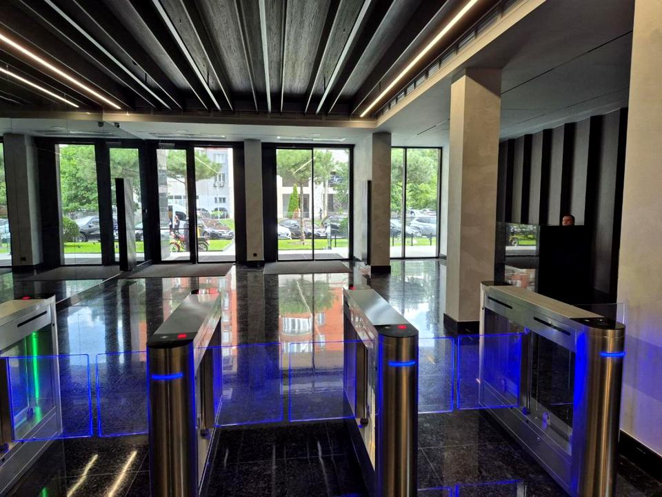 Будівля з оновленими зонами загального користування, презентабельним входом та якісним внутрішнім простором.