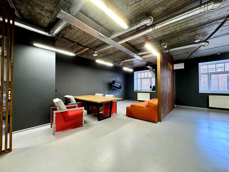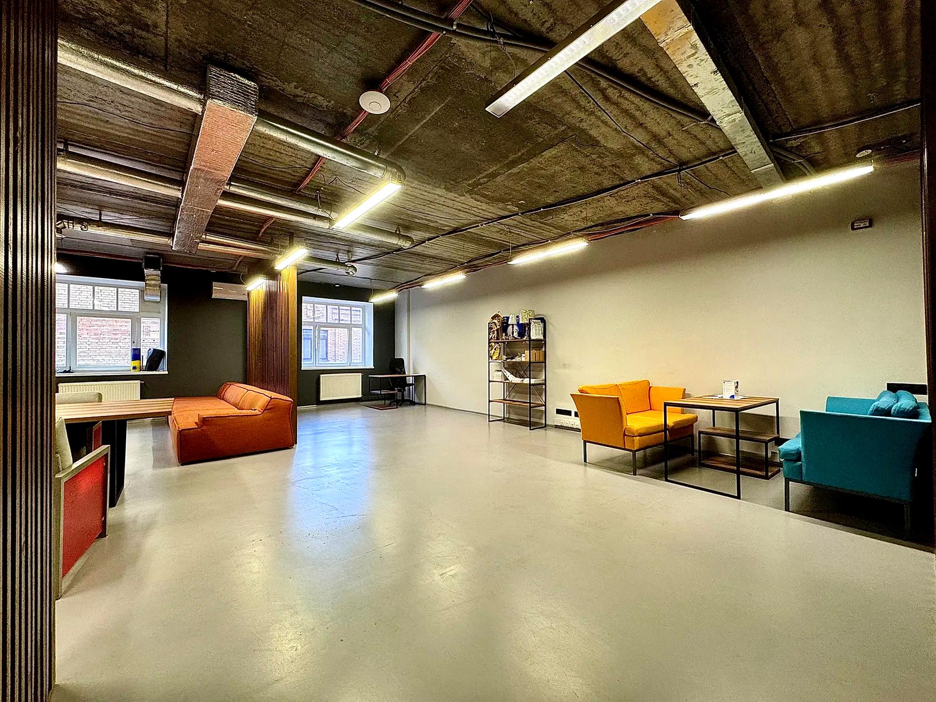 Оренда офісу 350 м² у центрі Києва, вул. Ірининська. Просторий офіс у стилі Loft з якісним ремонтом після орендаря, готовий до роботи. Підійде для IT-компанії, інвестиційної компанії, креативної студії або представництва.