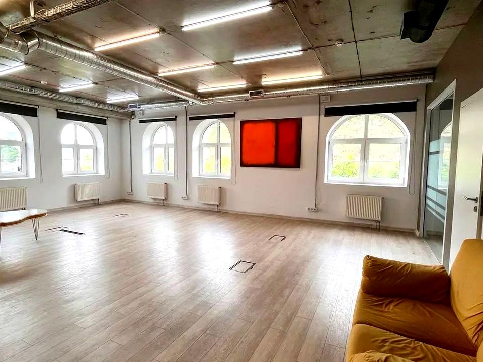 Планування - 2 зони опенспейс + 2 кабінети /переговорні + кухня + санвузол + серверна. Приточно-витяжна система вентиляції.
