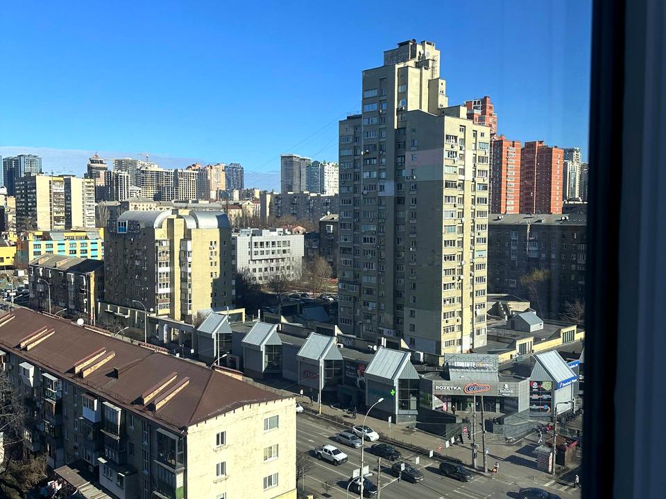 З вікон відкривається гарний вид на вул. Антоновича, що додає простору та світла в робочому середовищі.