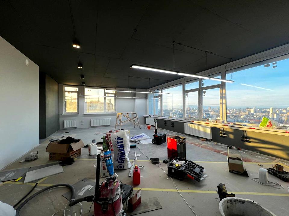 -Здається унікальний офіс 120 кв.м, захоплюючий вид на місто 35/37 поверх. Опен-спейс планування, два окремих кабінета, міні-кухня з меблями, два санвузли. Кондиціонери, компьютерна мережа. Засклений балкон. Ремонт на стадії завершення, проводяться чистові роботи.