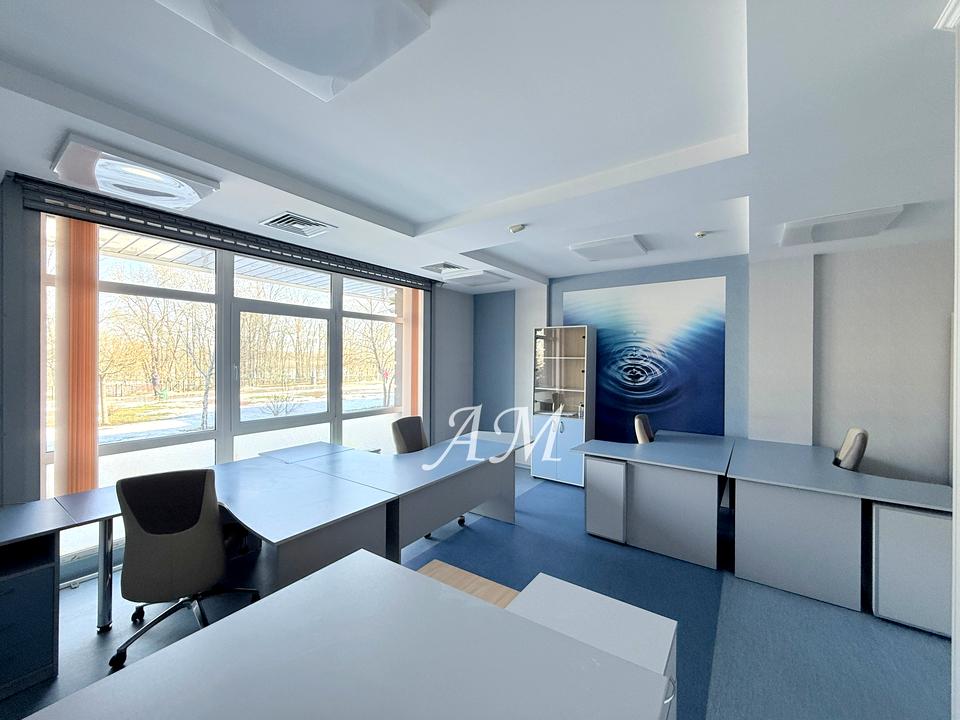 Офіс розташований на першому поверсі з окремим входом. Великі вітрини, сучасний ремонт з меблями роблять приміщення зручним для розміщення офісу відкритого чи закритого типу.