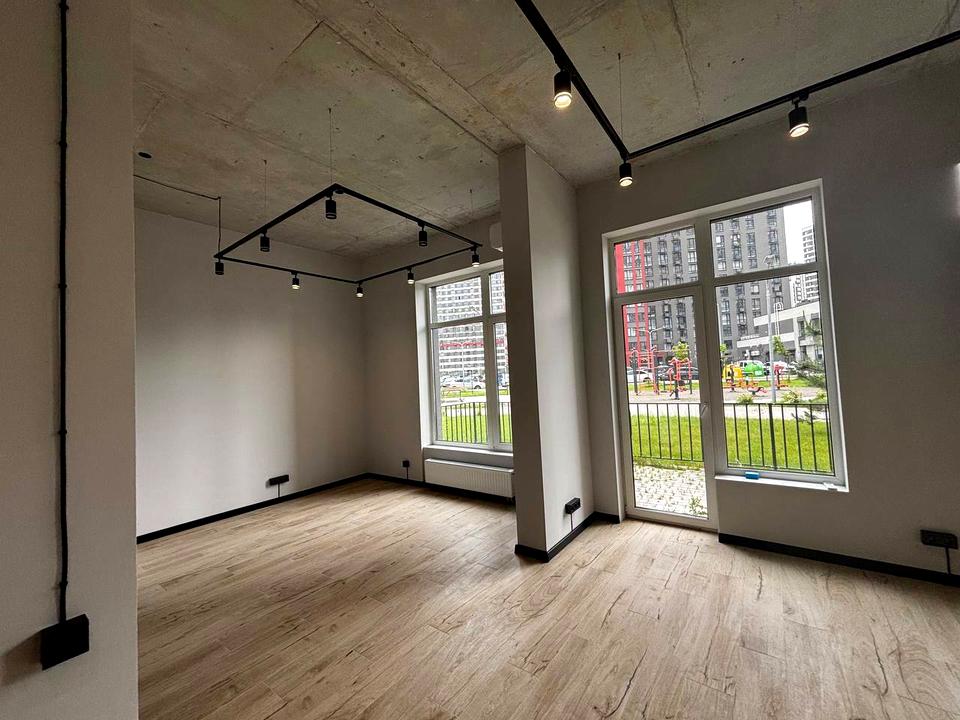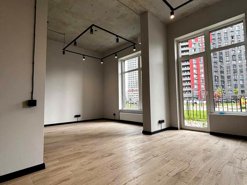 Объект коммерческой недвижимости, Помещение в жилом здании, Офисное помещение, Помещение для оказания услуг, Помещение свободного назначения. Объект на 1 этаже, В здании 25 этажей. Подъезд к зданию - асфальт. Электричество подключено, мощность 15 киловатт. Нет телефона. Газа нет. Холодная вода - водопровод, горячая вода - электрический бойлер. Отопление центральное. Есть санузел. Проведены металлопластиковые трубы, новые. Есть ограждение. Нет подвала. Есть стихийная автопарковка. Централизованная канализация. Кондиционер. Рядом есть остановки, супермаркет, столовая, кафе, ресторан, банкомат, отделение банка. Здание приватизировано. Документы на объект недвижимости: свидетельство о праве собственности на жилье в жилищно-строительном кооперативе. Новые. Интернет оптоволоконный. Комиссия за услуги 50 %