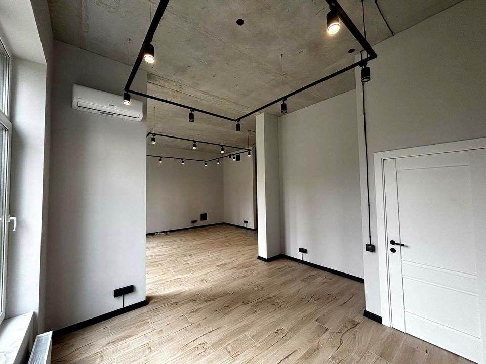 Open space + 2 кабінета (можливо відокремити і буде 3 кабінета), санузел с душем, мини-кухня, кладовая . На підлозі скрізь плитка