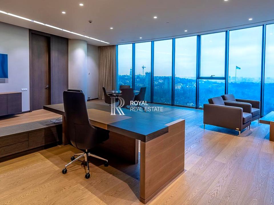 Просторий преміальний офіс із сучасним дизайнерським ремонтом та панорамними видами на Київ. Розташований у престижному бізнес-центрі класу A на Печерську.
