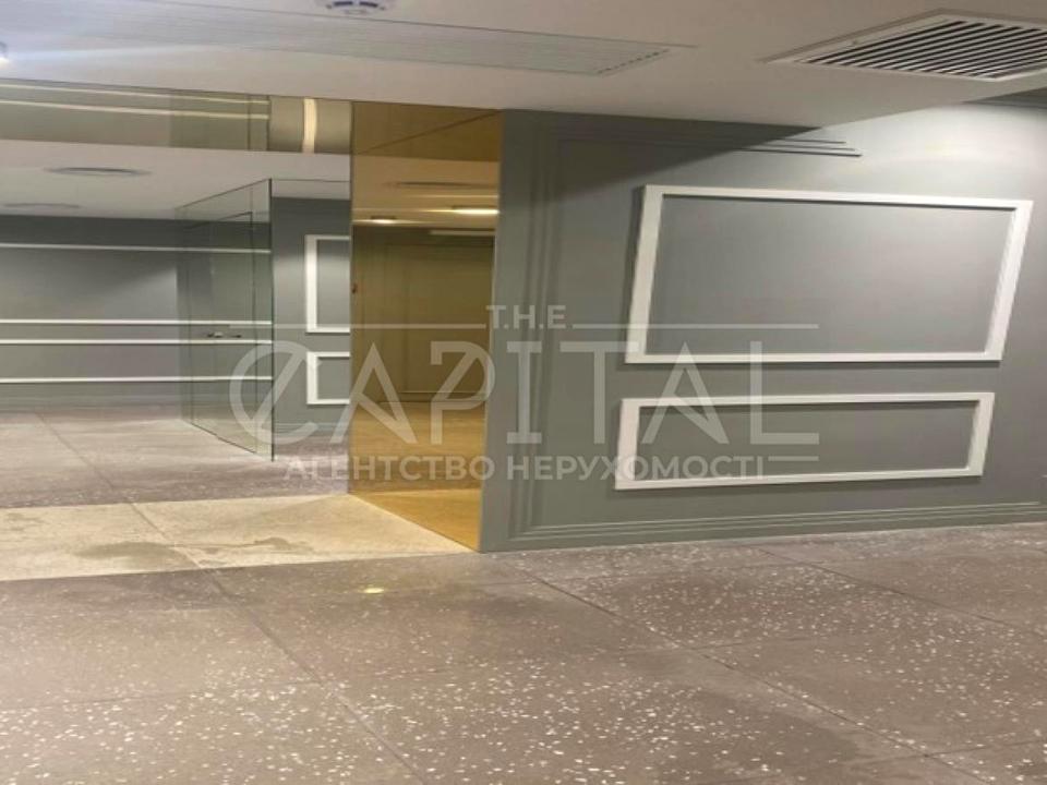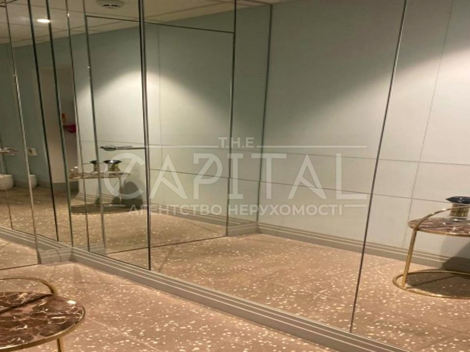 Дворівневе фасадне торгове приміщення з великими вітринами, разміщене на першому та цокольному рівнях житлового будинка.