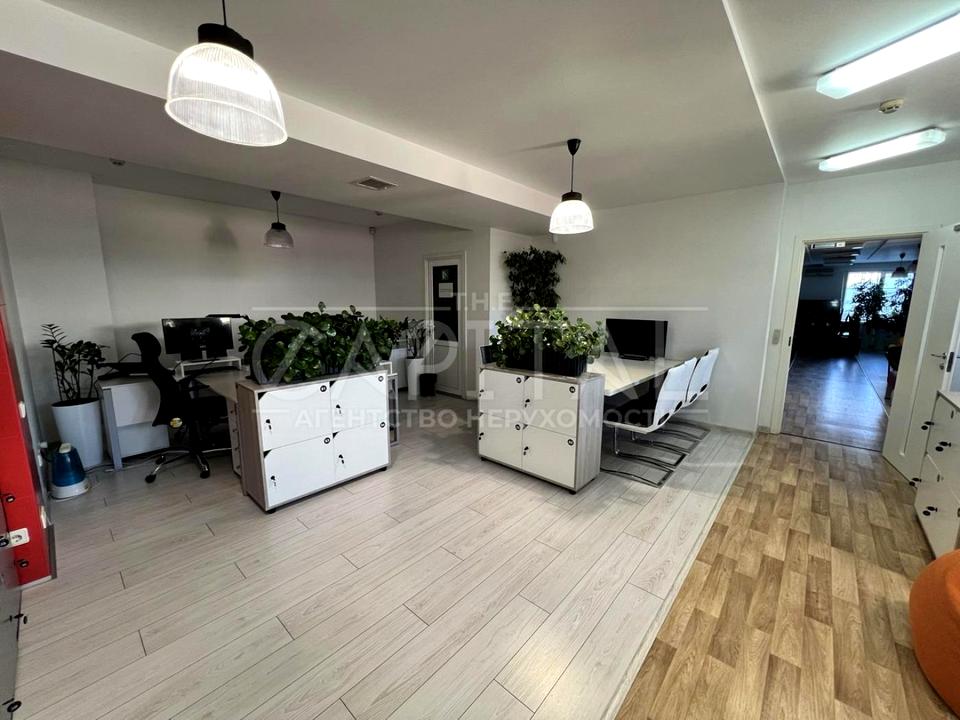 Функціональне планування: два open-space простори, чотири окремі кабінети, переговорна кімната, зона рецепції, міні-кухня та простора тераса.