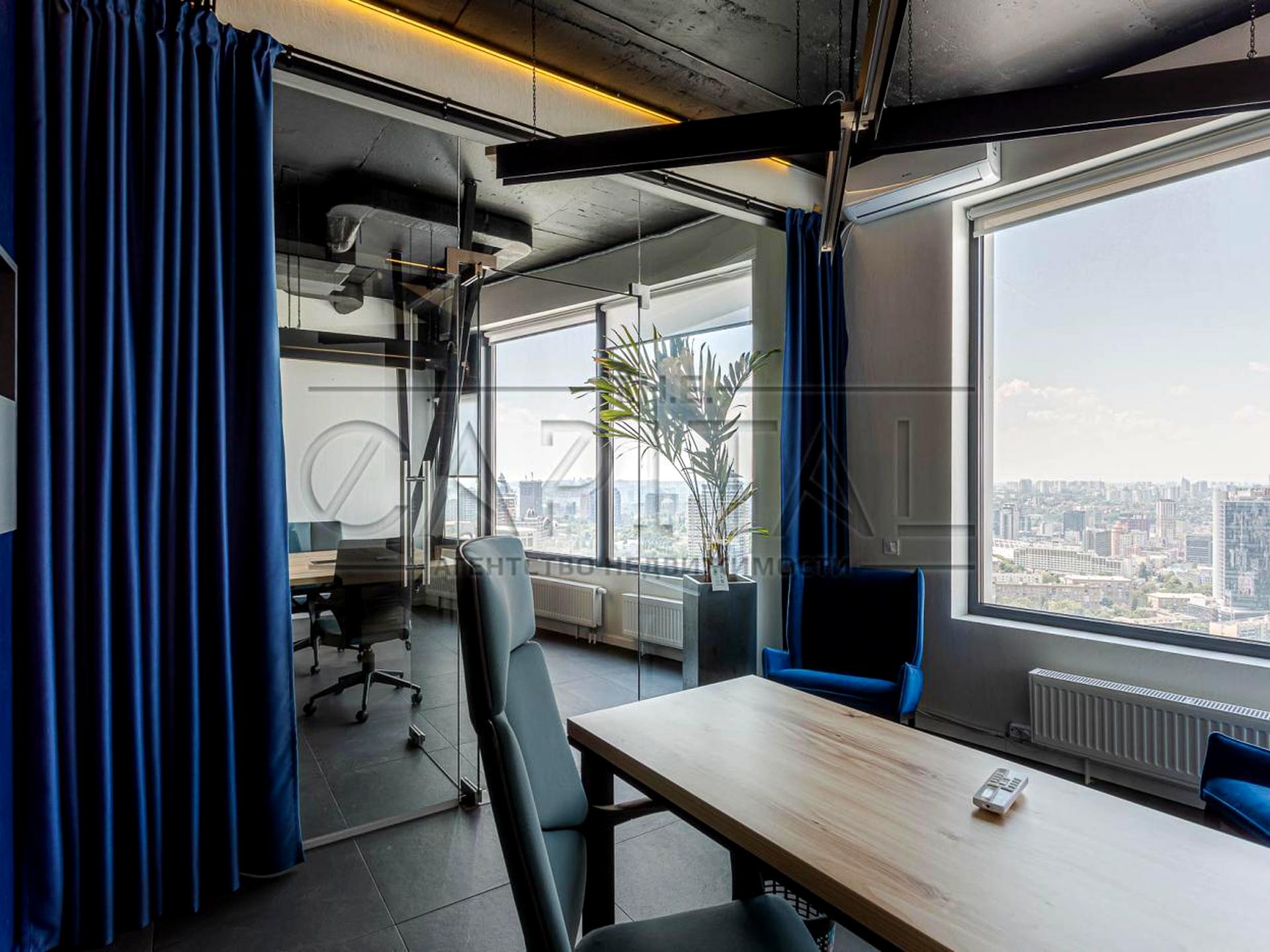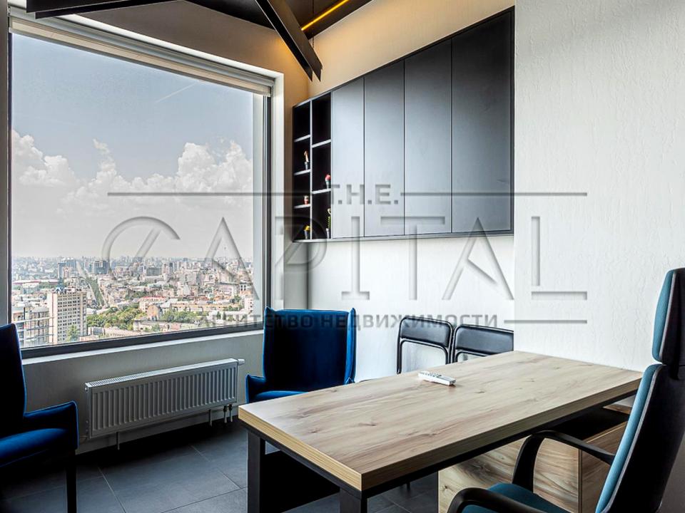 Видовой офис на 36 этаже, полностью укомплектован мебелью и техникой. Панорамные окна открывают вид на Печерск и центр столицы. Состояние помещения: свежий современный дизайнерский ремонт. Офис полностью укомплектован современной качественной мебелью. На кухне есть вся необходимая для офиса техника: холодильник, микроволновка, чайник. Бойлер. Система кондиционирования, климат-контроль.