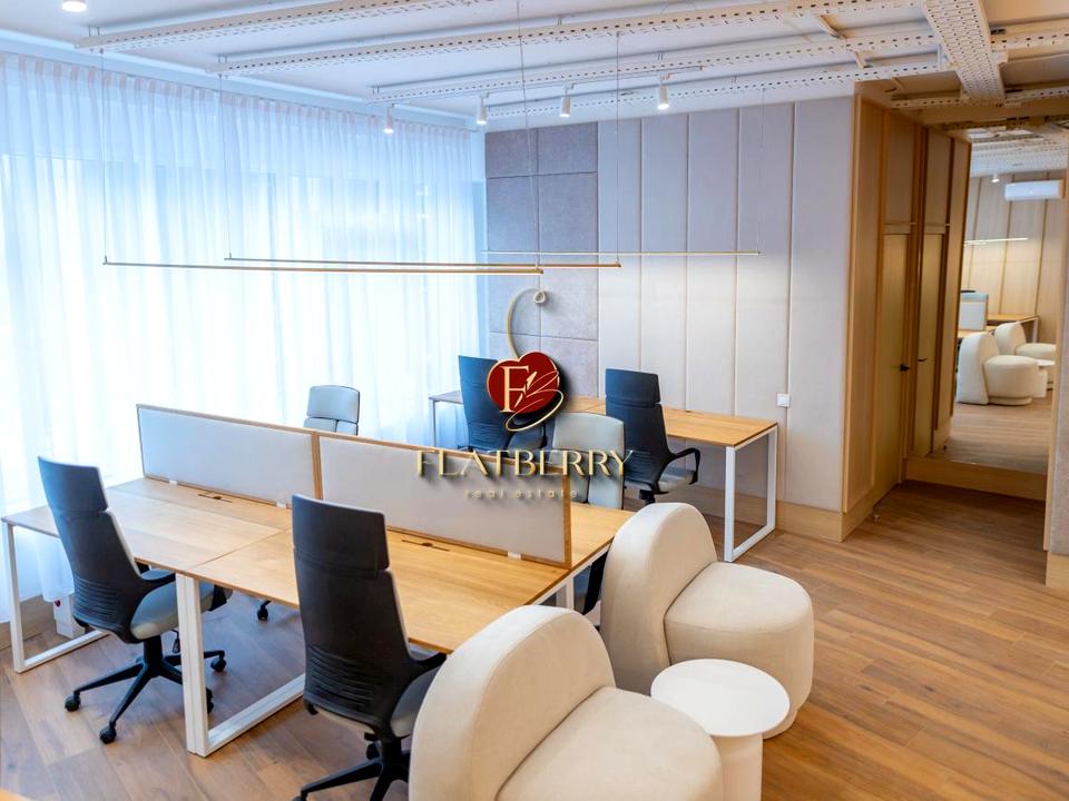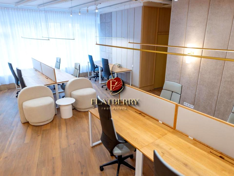 Вхідна зона з рецепцією створює професійне перше враження, а планування забезпечує комфорт щоденної роботи.