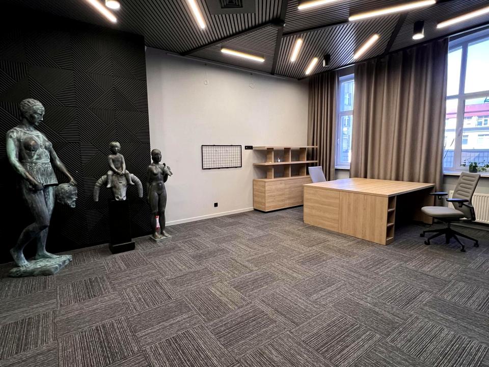 Офіс розташований на 4-му поверсі престижного бізнес-центру та має загальну площу 769,55 кв.м. Простір виконаний у стильному сучасному дизайні з якісним ремонтом та зручним кабінетним плануванням, що ідеально підходить для комфортної роботи команди будь-якого масштабу.
