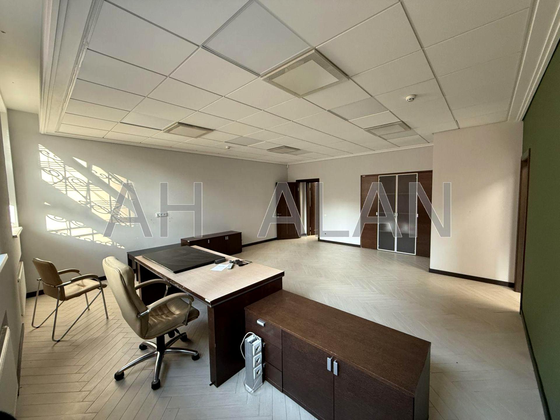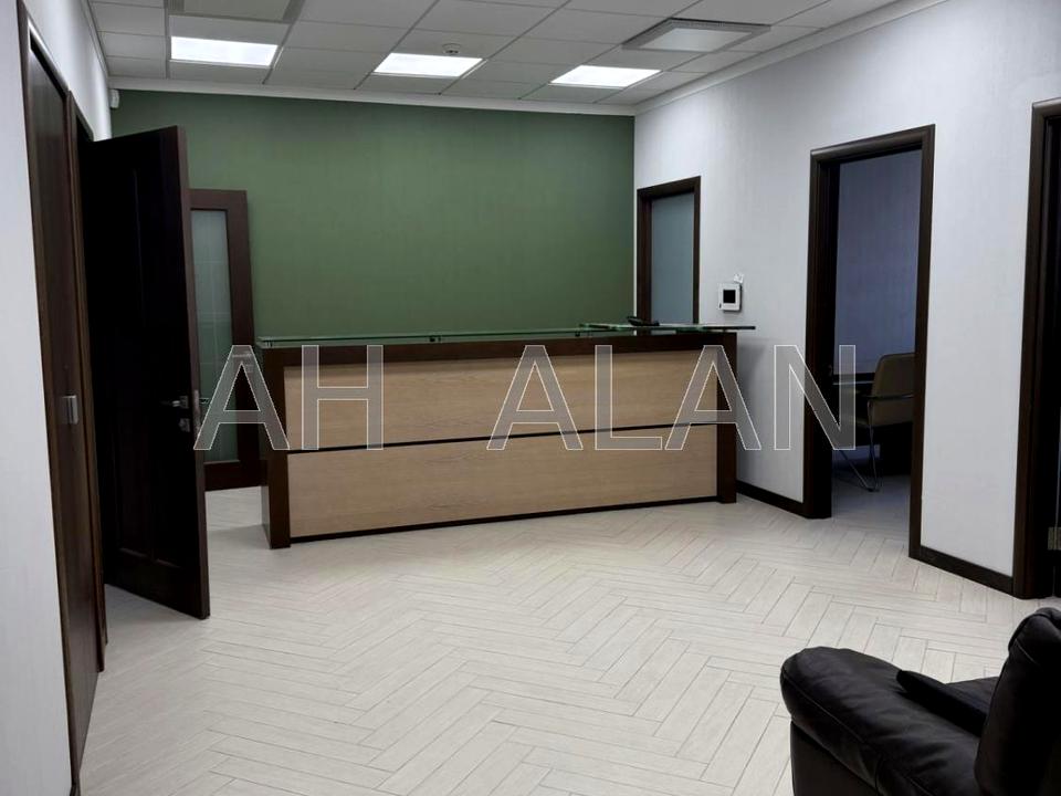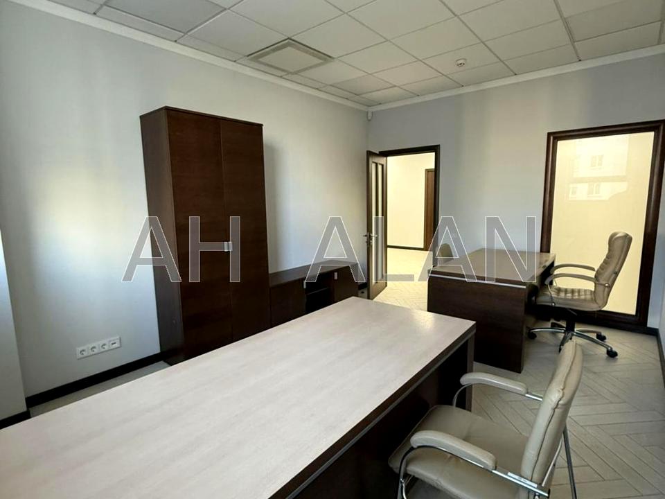 Приміщення має кабінетне планування та частково укомплектоване меблями. У складі офісу — зона рецепції, чотири окремі кабінети, міні-кухня та санвузол. Виконано якісний євроремонт.