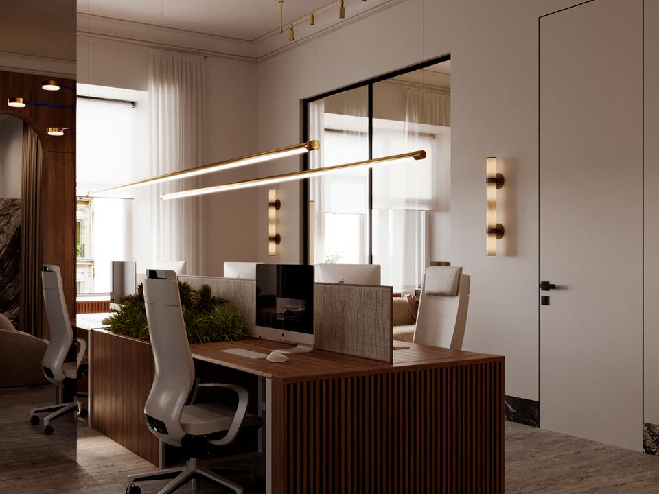 - Офіс повністю укомплектований сучасними якісними меблями. На кухні є вся потрібна для офісу техніка: холодильник, плита, мікрохвильова піч. Бойлер. Система кондиціювання, клімат-контроль.