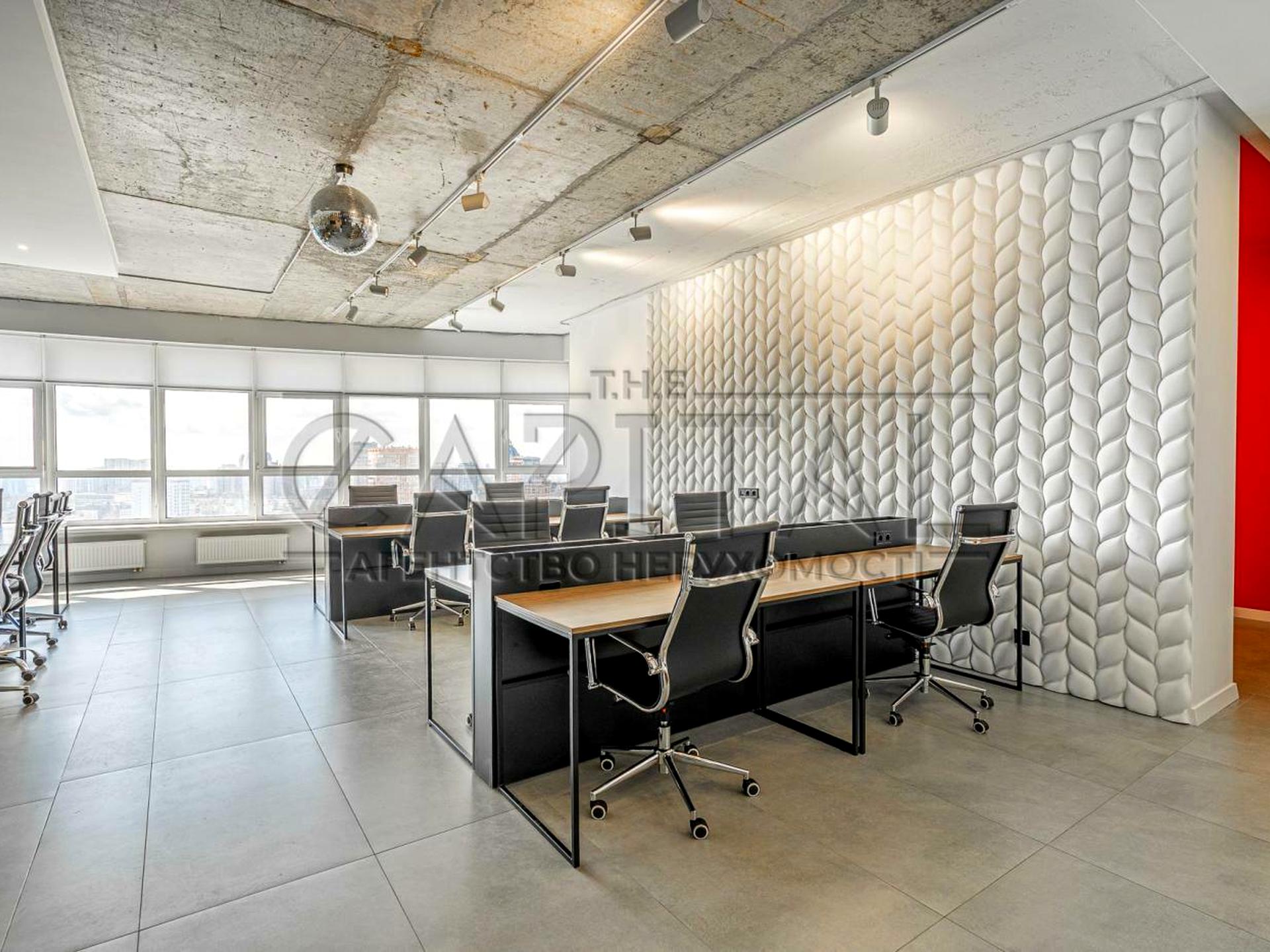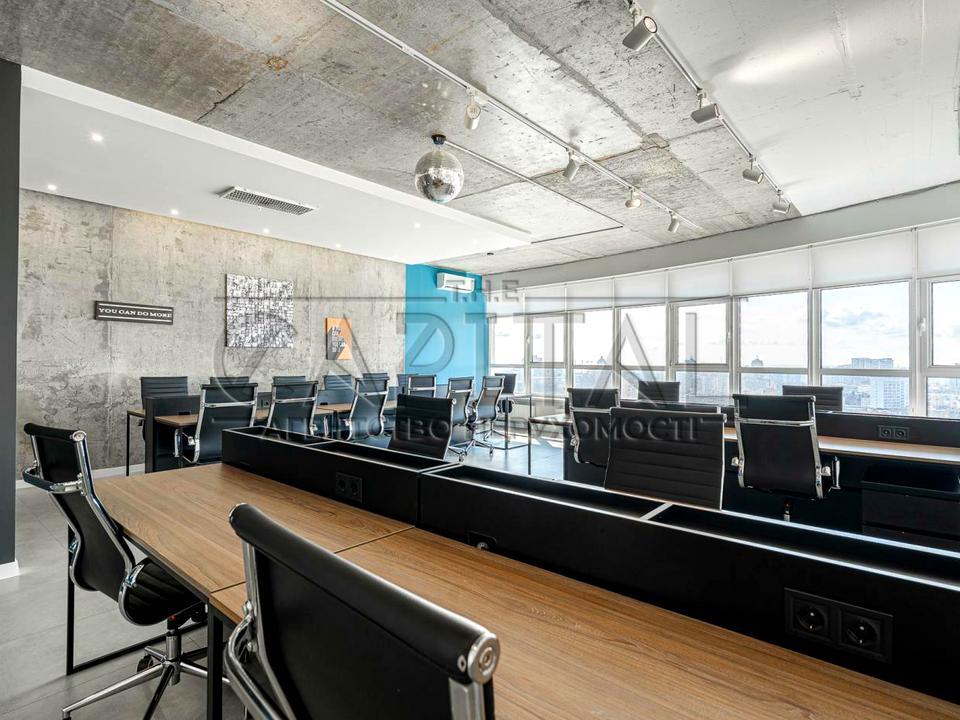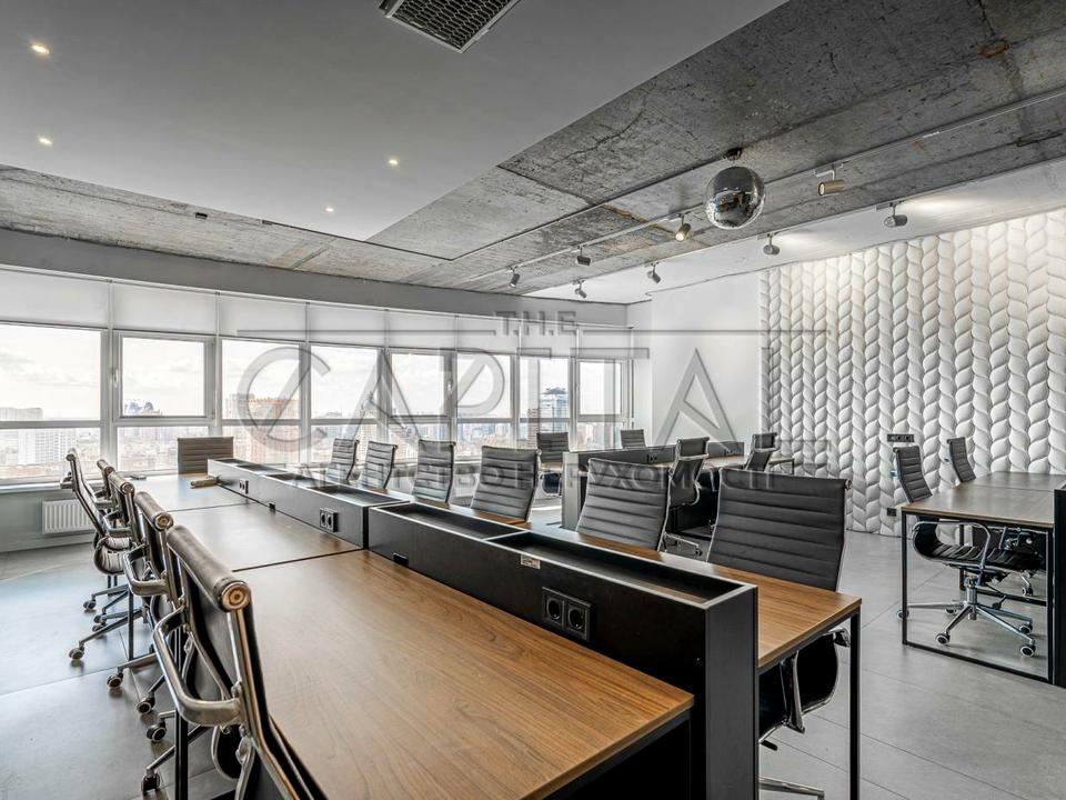 Видовий офіс на 29 поверсі, повністю укомплектований меблями та технікою. Панорамні вікна відкривають вид на Печерськ та центр столиці. На кухні є вся потрібна для офісу техніка.