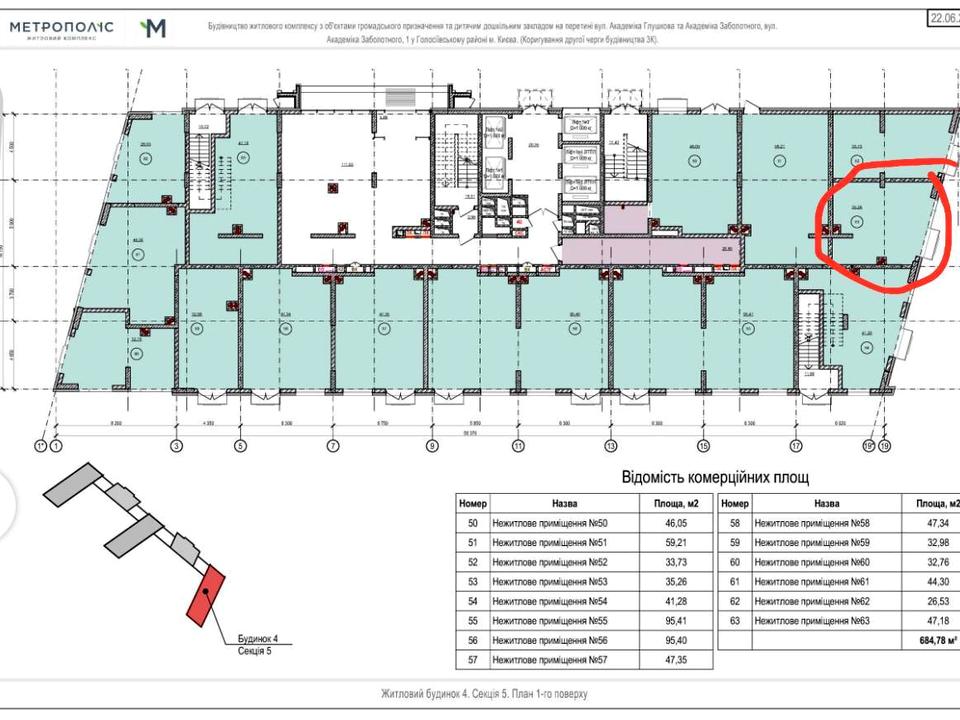 Адреса: м. Київ, вул. Академіка Заболотного, 1, Будинок 4. Секція 5. Голосіївський район
