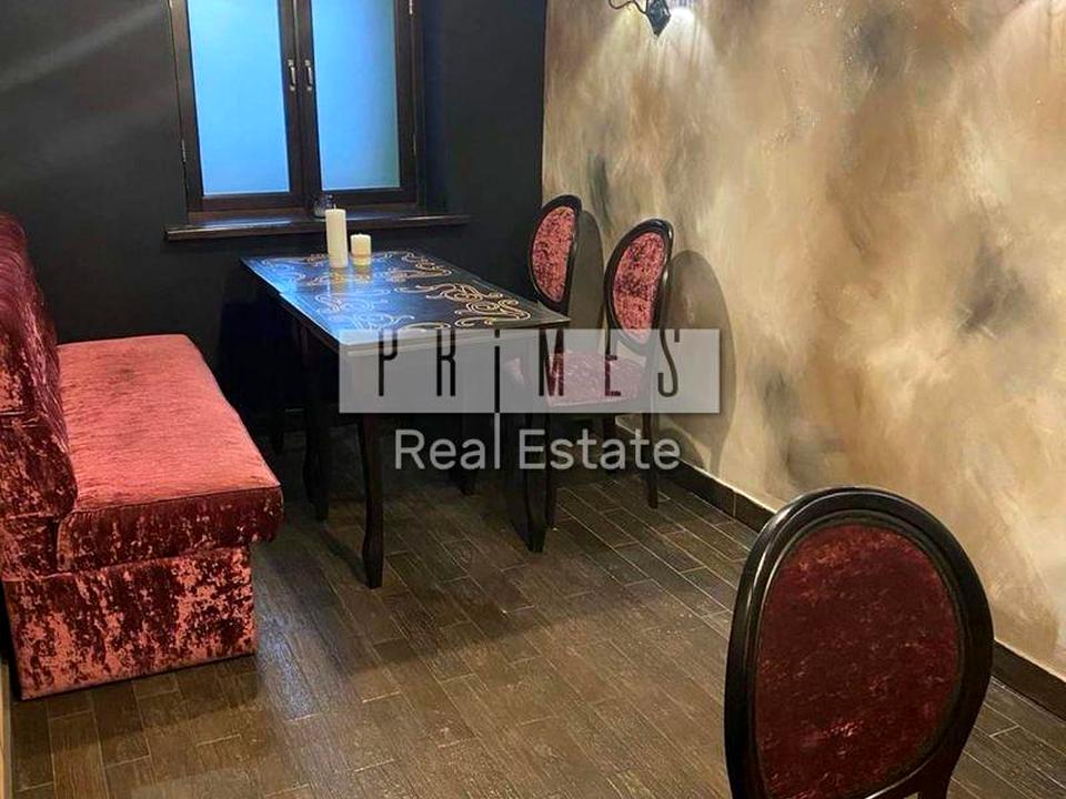 на 40 місць. Зал 118м2, кухня 70 м2, припливно-витяжна система вентиляції. Кондиціонер. 2 входи. Витяжку виведено на дах будинку. Опалення індивідуальне електро. Можливий літній майданчик на фасаді. З ремонтом. З обладнанням.