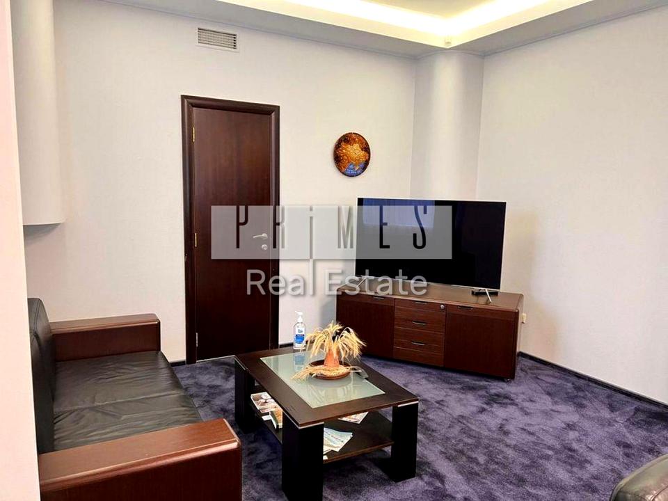 • Сучасний офісний ремонт з кабінетною системою планування та центральним коридором.