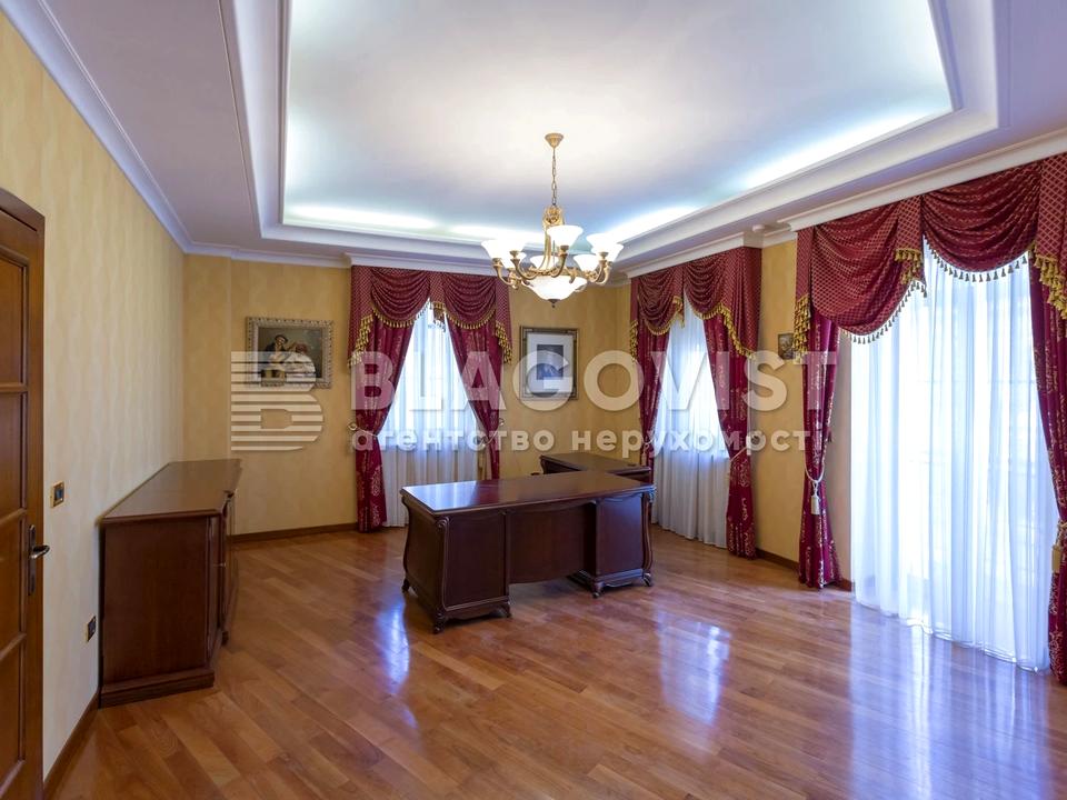 Окремо розташована будівля, площа: 572,0 кв.м; 2 поверхи + мансарда + підвал. Площа типового поверху: 180 м2. Наземний паркінг: 8-10 автомобілів. 1-й поверх: конференц-зал, кабінети, приміщення охорони. 2-й поверх: кабінети, кухня. Мансардний поверх: open space, барна стійка, сауна. Представницький ремонт: дерев'яний паркет, вітражі, обробка мармуром. Італійські меблі. Нова котельня Спліт і канальна система кондиціонування. Система відеоспостереження/СКД.