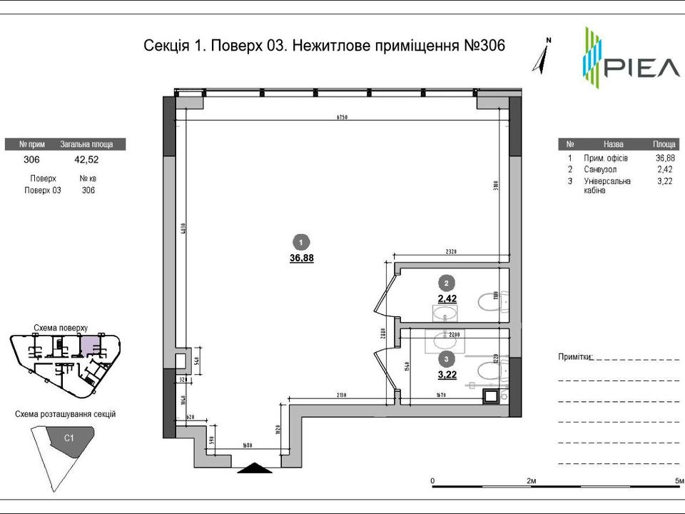 Оптимальна площа: 42,52 м² — ідеально для невеликої команди, студії або представництва.