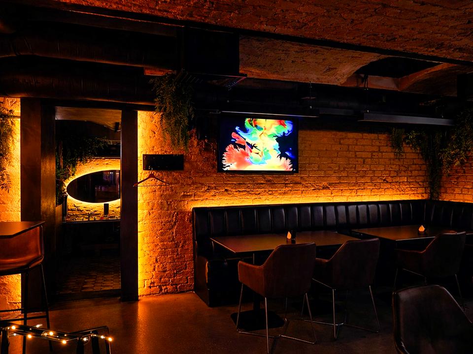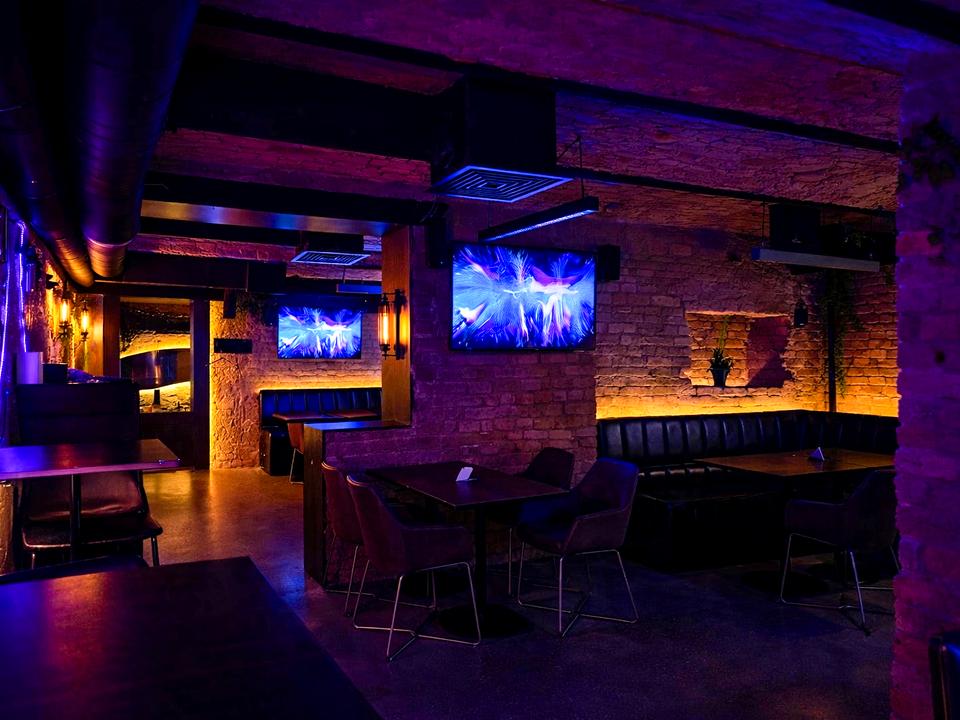 Заклад площею 250 м², підвальне приміщення, яке використовується як бомбосховище, що є важливою перевагою в поточних реаліях. 20 столиків + 5 місць на контактному барі, два зали з ТВ, стильна фотозона, VIP-кімната з проєктором на ~30 осіб. Усі столи мобільні — корпоративи проводили до 130 гостей.