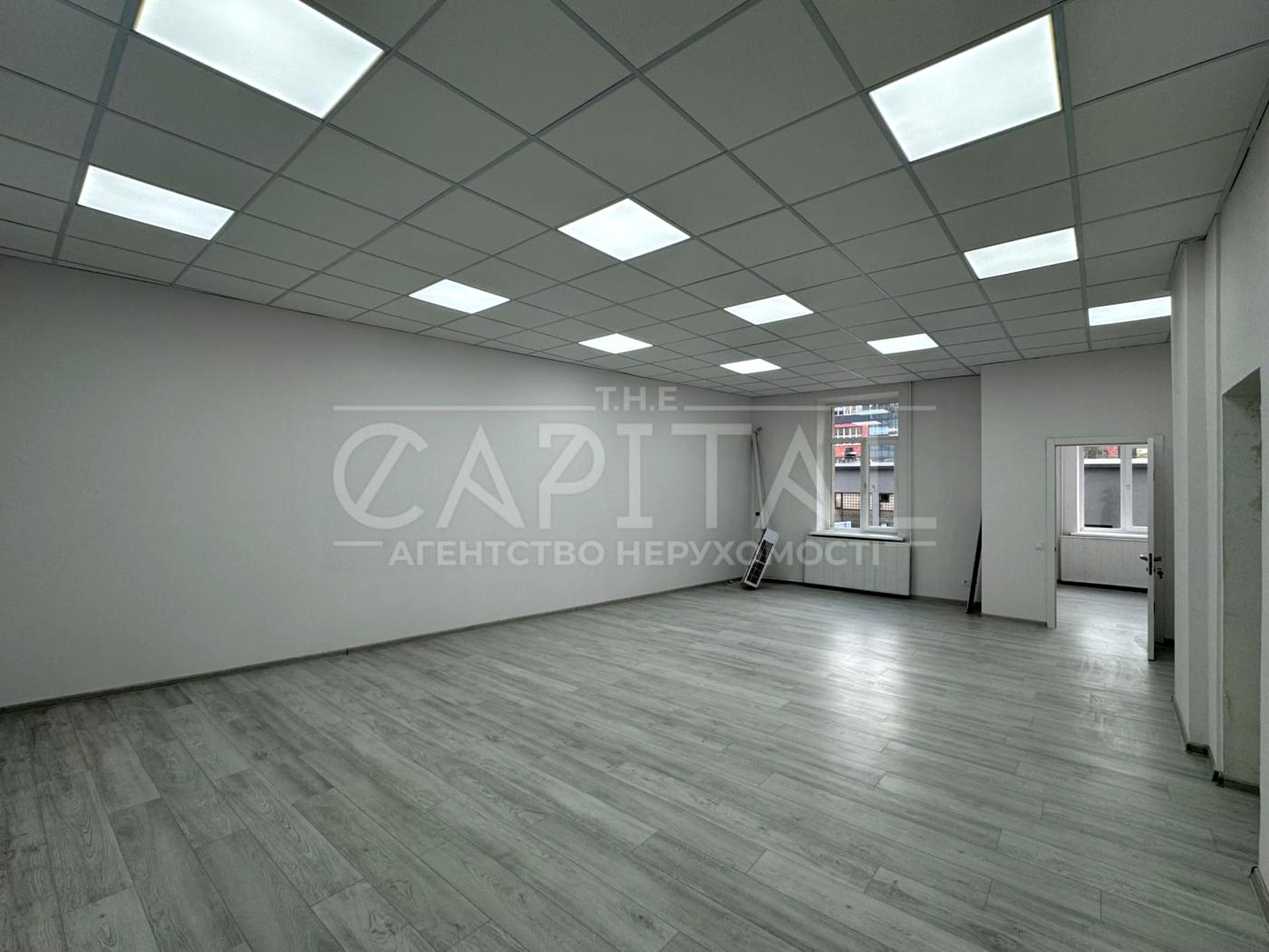 У приміщеннях виконано типовий офісний ремонт: стеля — Armstrong, підлога — ламінат, у зонах загального користування — плитка, стіни — пофарбовані. За потреби компанія-орендар може адаптувати простір під свій стиль та планування.