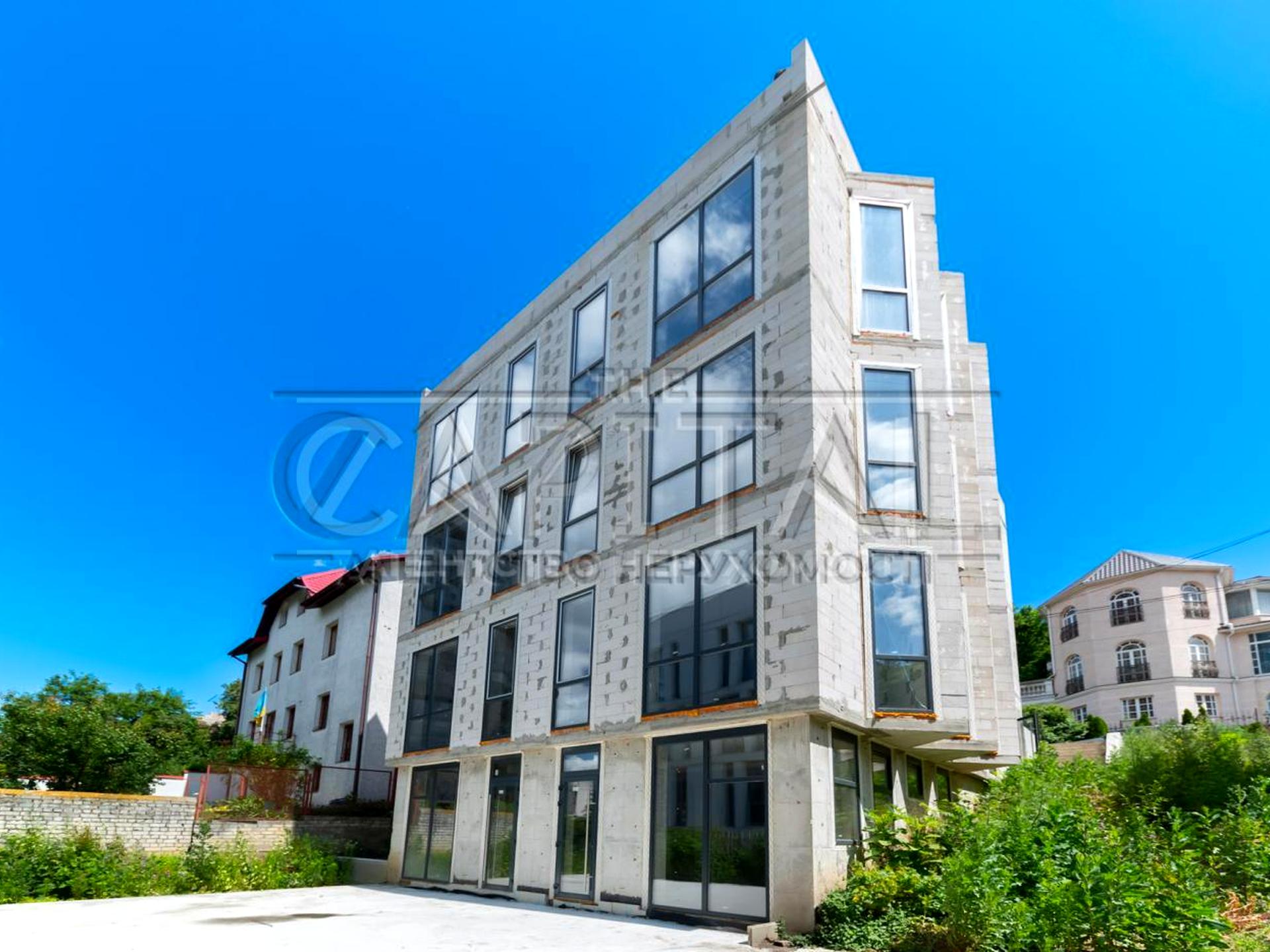 Сучасна 4-поверхова монолітно-каркасна будівля на завершальній стадії будівництва. Проводяться фасадні роботи.