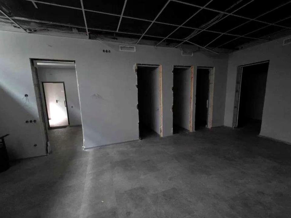 Великі фасадні вікна забезпечують доступ денного світла. Виконано частковий ремонт, розведення сантехніки та електрики.