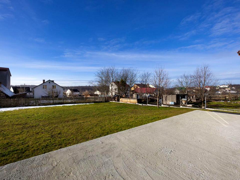 Перший поверх будинку включає: велика кухня - вітальня з виходом на простору терасу 20м2, гостьова кімната, санвузол, паливна.