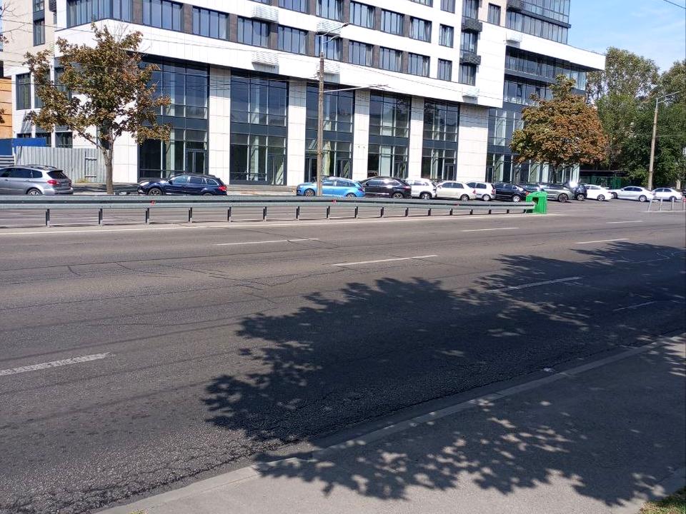 Первый этаж ЖК бизнес-класа. Виход на Набережную Победы. Рядом есть другие дома ЖК.