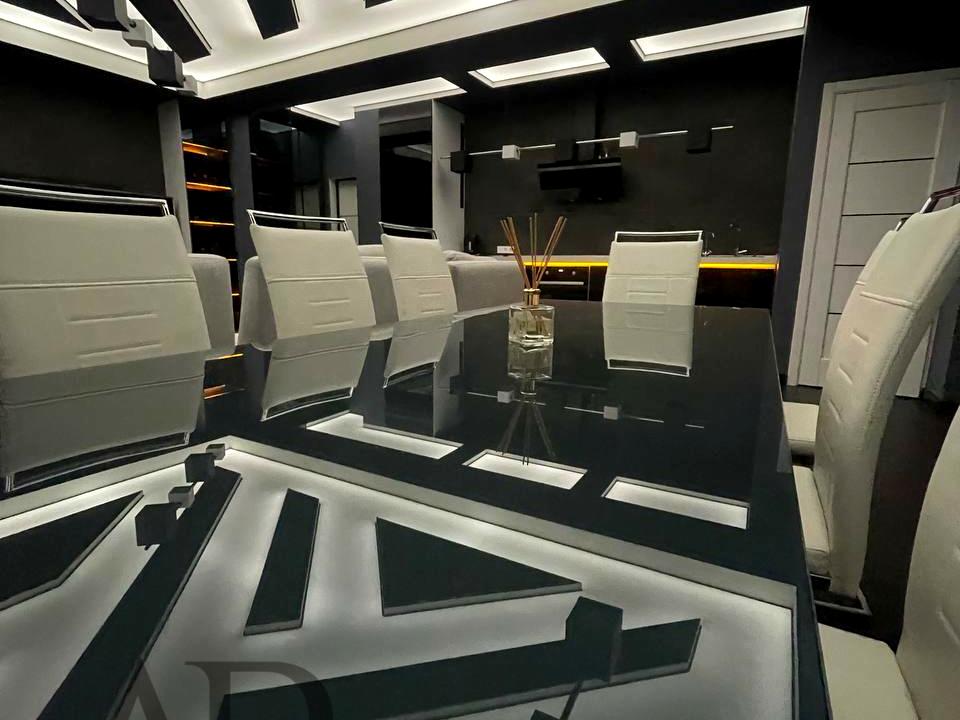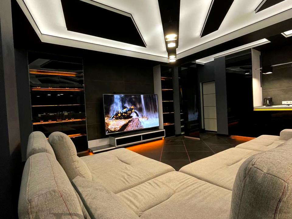 -По всей квартире установлена подсветка (пол, рабочие зоны, потолок)